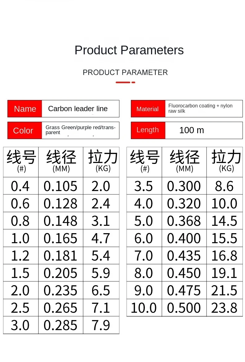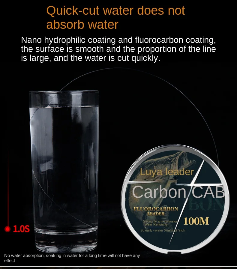 Línea de pesca con revestimiento de fluorocarbono, 100M, 0,10mm-0,50mm, 2KG-23,8 KG, línea de guía de fibra de carbono, línea de hundimiento de alambre de señuelo