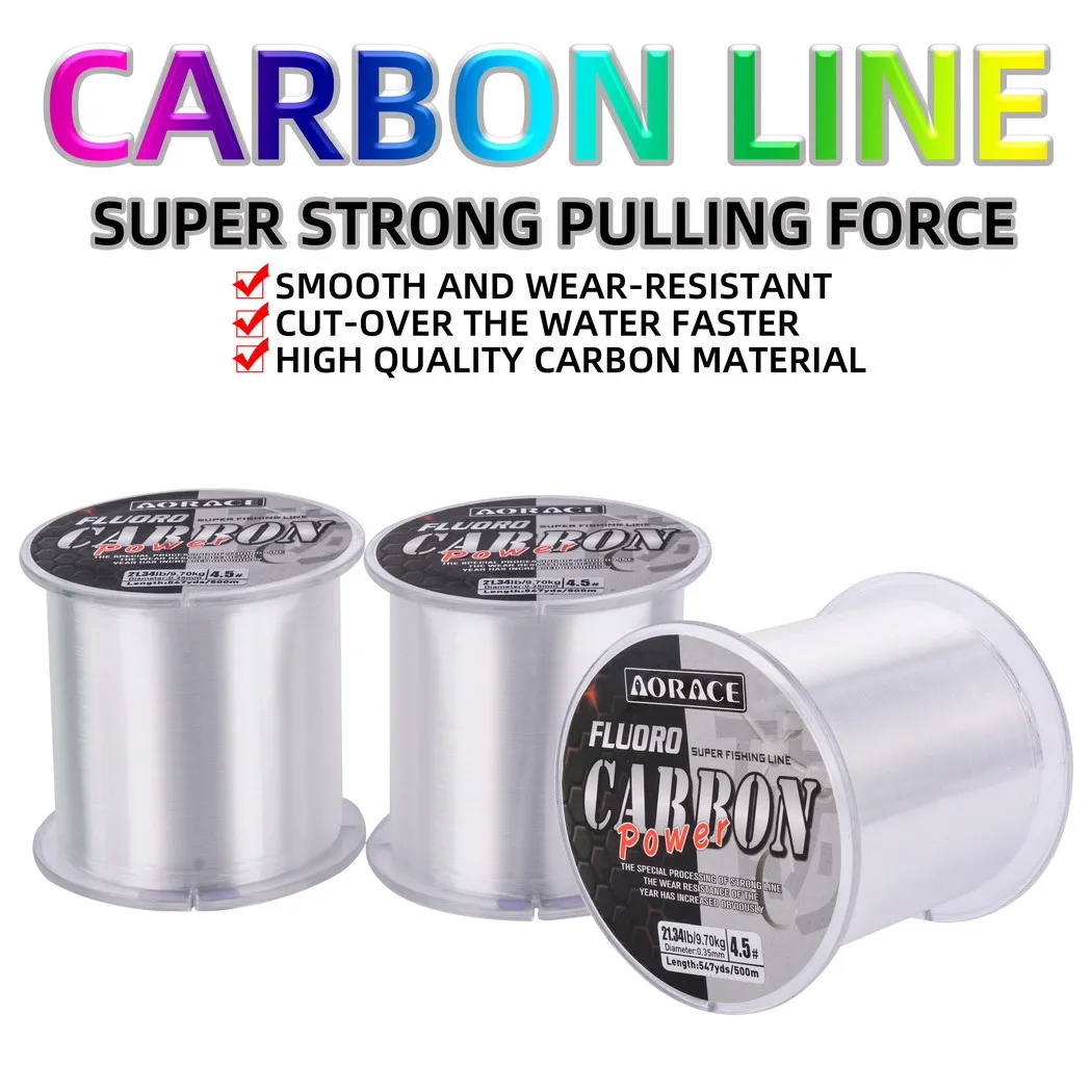 Línea de pesca con revestimiento de fluorocarbono de 500M, 0,14-0,50mm, 4,13LB-34,32LB, línea líder de fibra de carbono, señuelo de pesca, línea de hundimiento, Japón