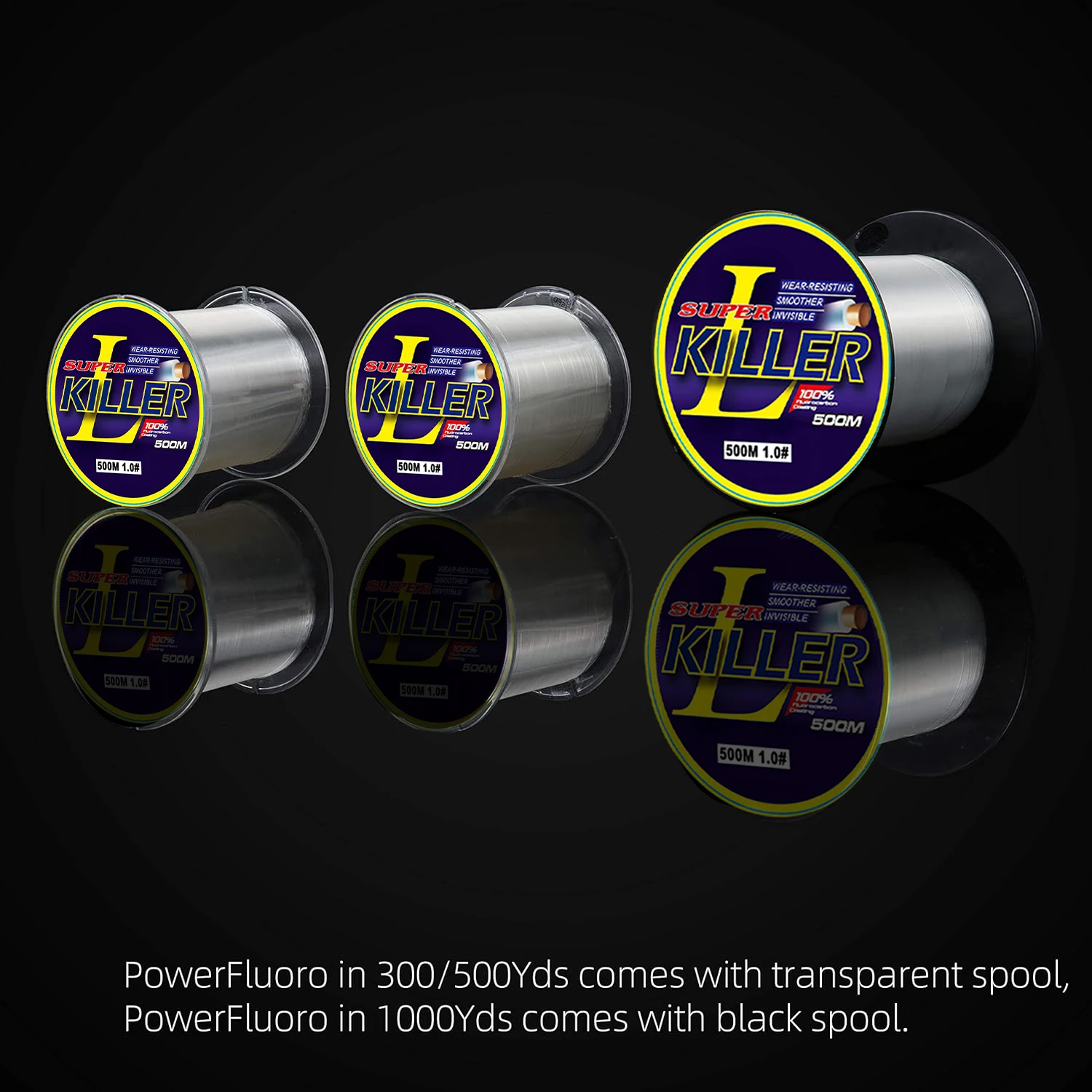 [Línea híbrida] construida con un revestimiento exterior de fluorocarbono 100% con núcleo de copolímero, el revestimiento de fluorocarbono produce una excelente resistencia a los golpes, resistencia a la abrasión y resistencia al nudo para ofrecer lo último en resistencia al impacto, Y el copolímero añadido añade flexibilidad, fuerza de nudo y memoria reducida