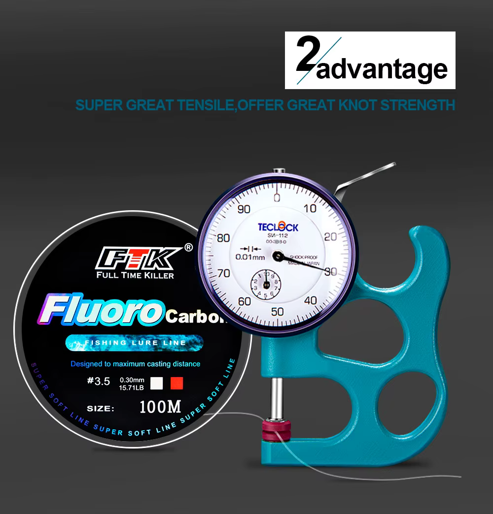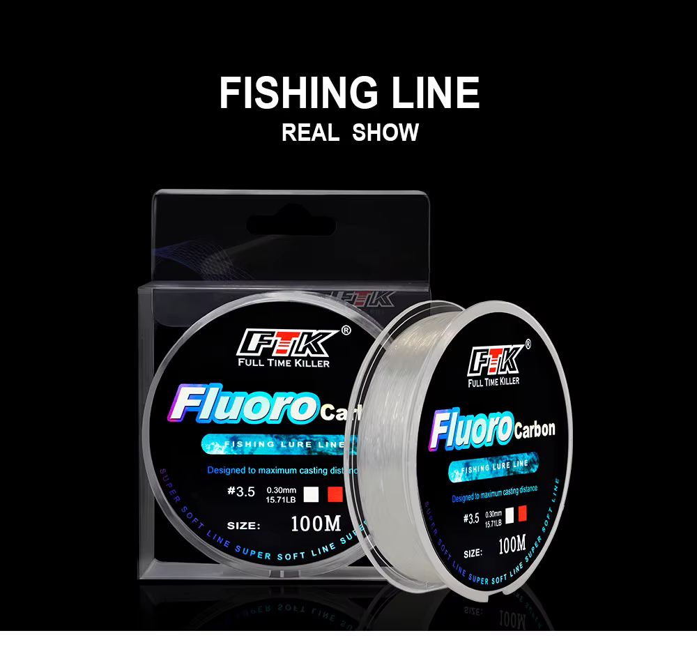 Línea de pesca con revestimiento de fluorocarbono FTK, 100M, línea líder de monofilamento de fibra de carbono de 4,14LB-34,32LB, línea de hundimiento para pesca de carpa
