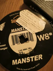 W8 II 100 lb con 8 hebras de material PE de 200 denier, prueba de laboratorio real con roturas de 127 lb.