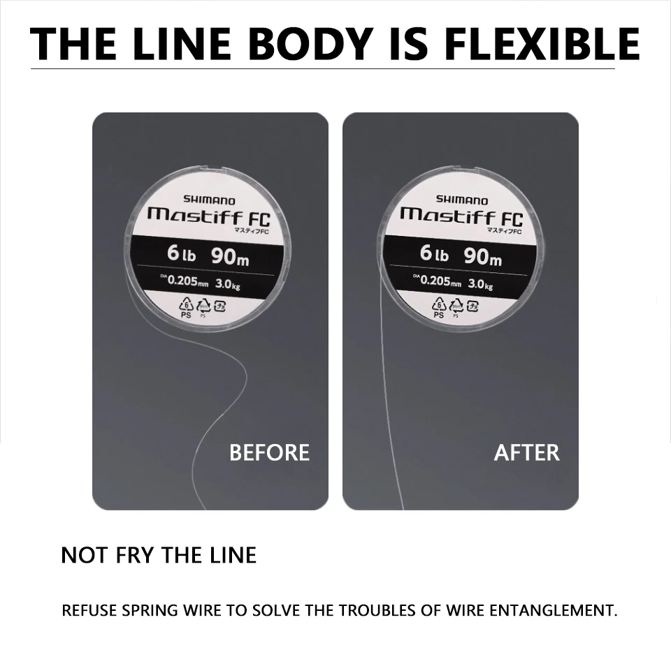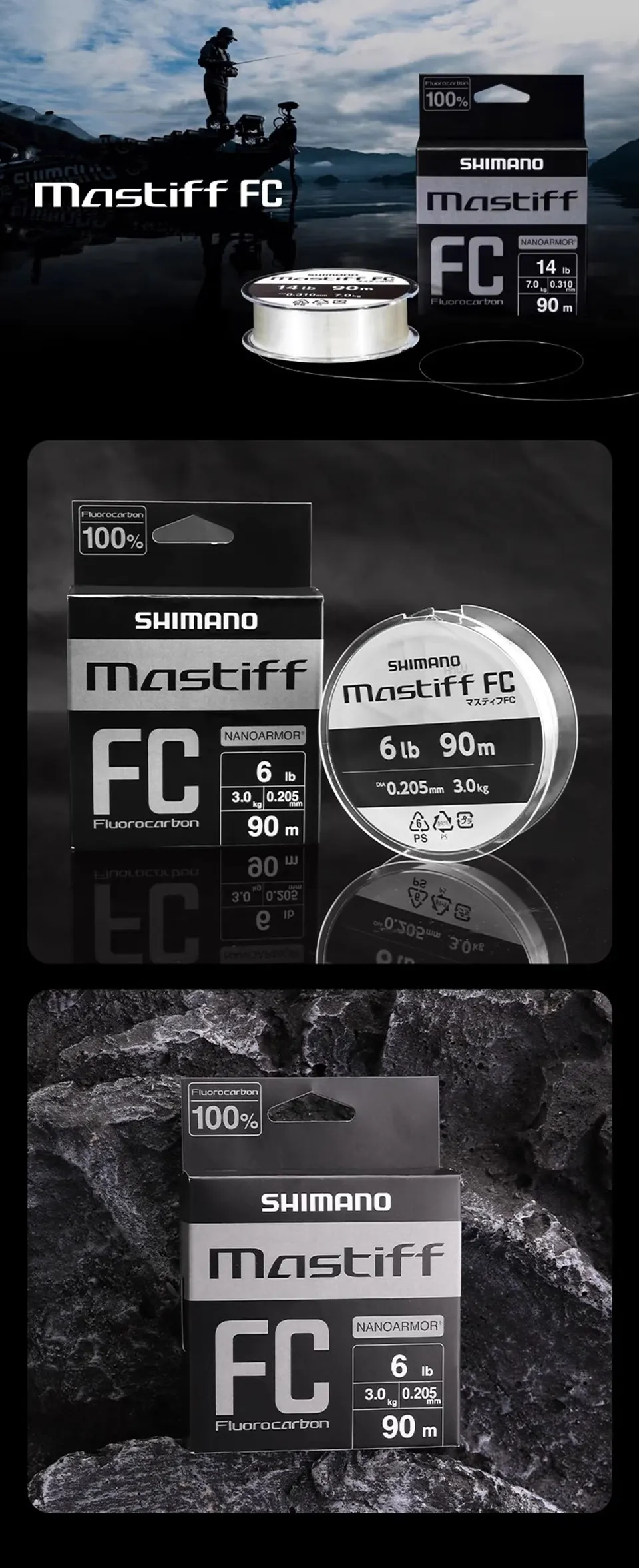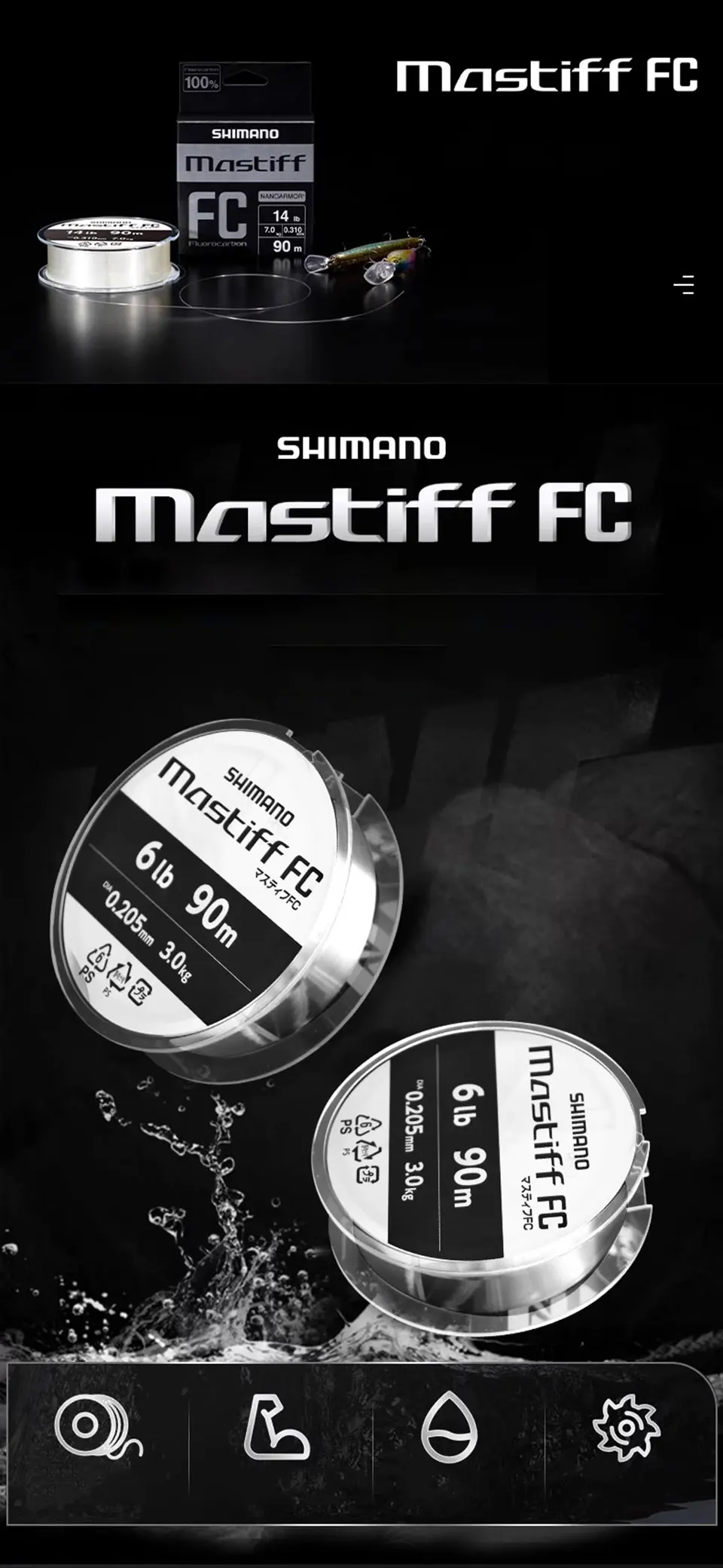 Línea de pesca SHIMANO Mastiff FC de fibra transparente de fluorocarbono de 90M hecha en Japón