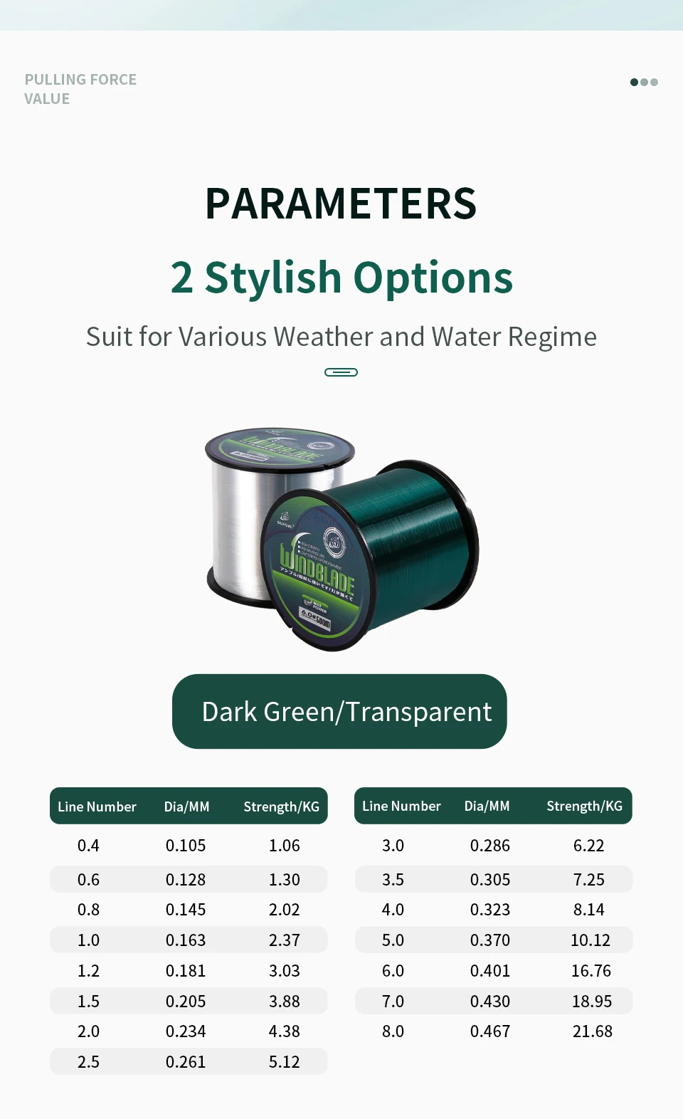 Variante: Color:Green 500M Line Number:8.0-0.47mm-21.68KG
