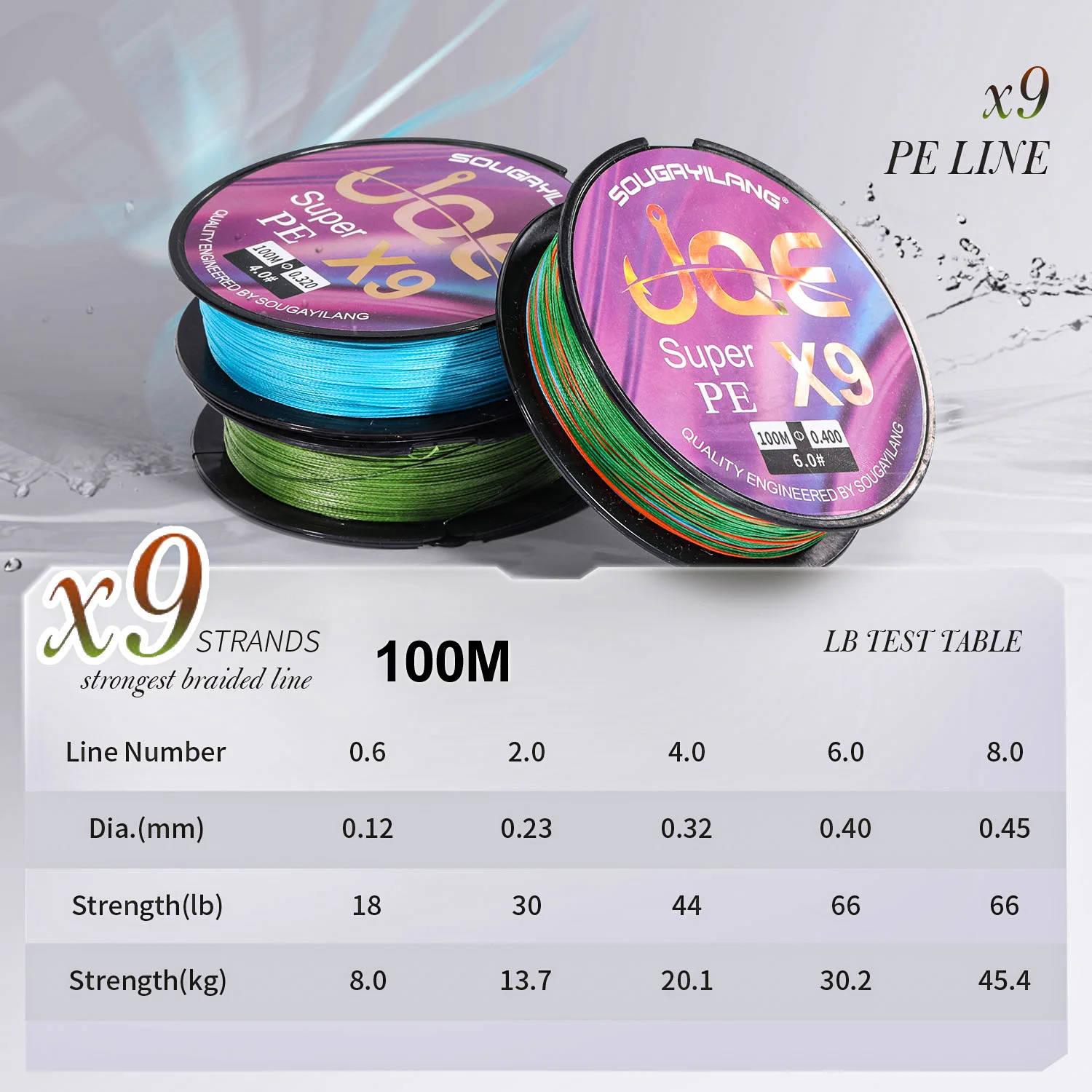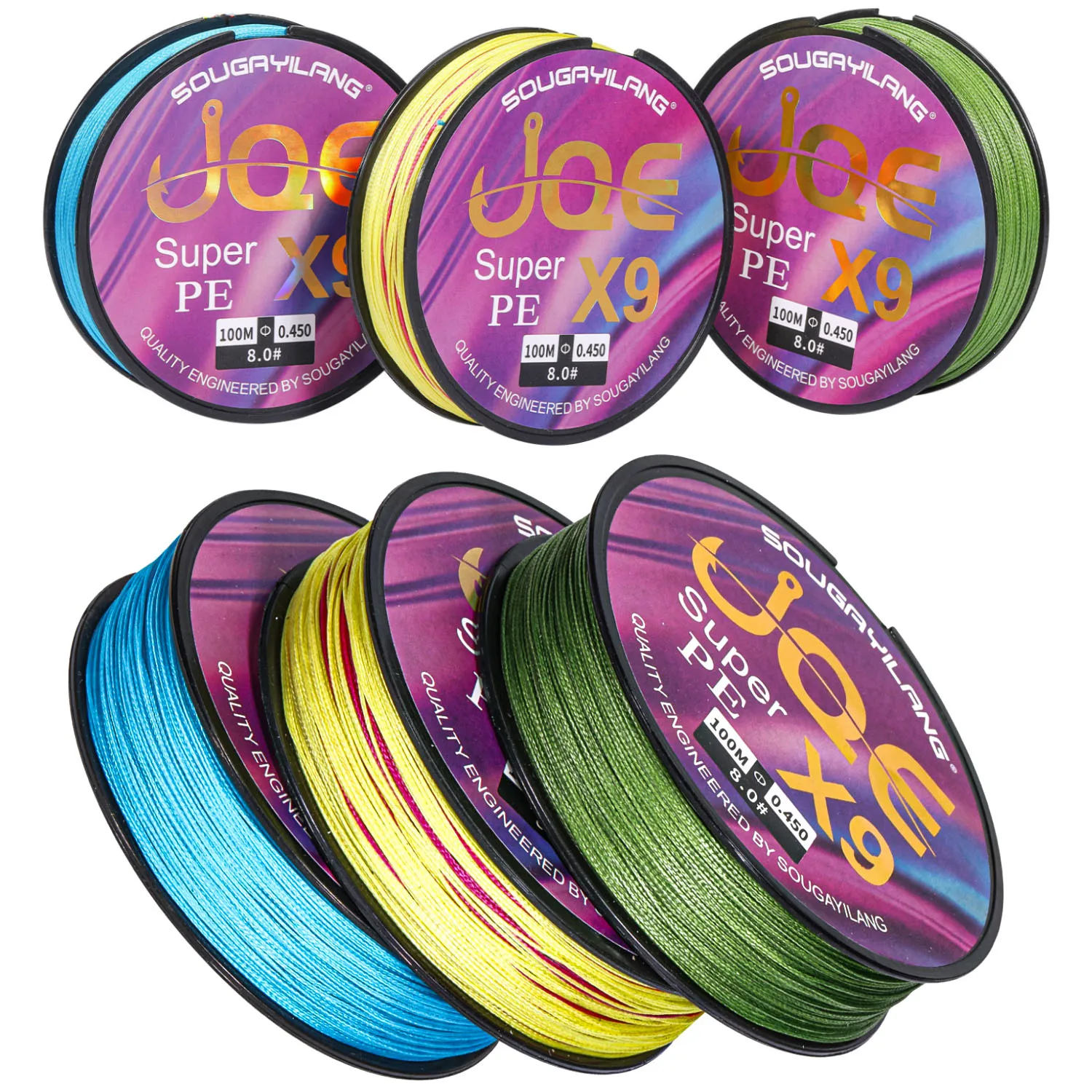 Línea de pesca Sougayilang Pe 9X trenzada 100m 3 colores para línea de pesca MaxDrag 66LB línea de PE multifilamento para pesca en agua salada