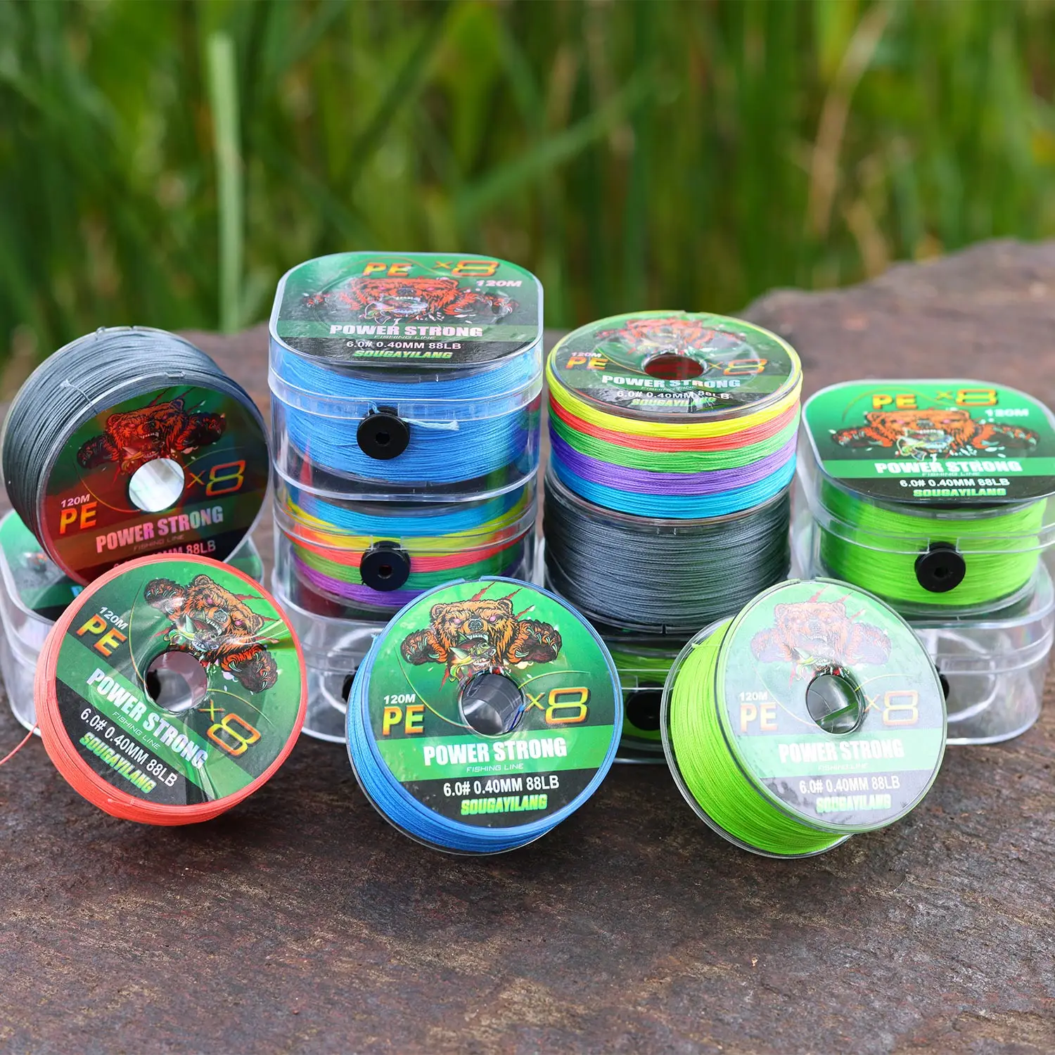 Línea de pesca Sougayilang X8 línea trenzada de 8 hebras 120m línea de pesca japonesa 0,12-0,40mm líneas de pesca resistentes a la abrasión que se hunden