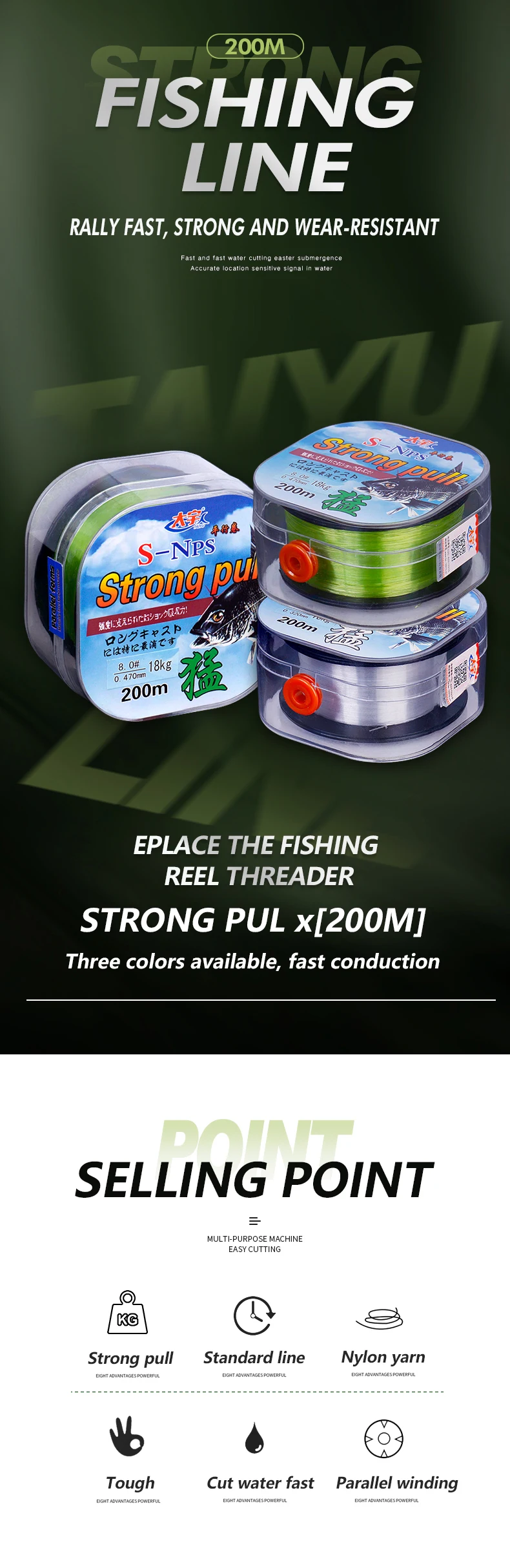 【Características】: El hilo de pescar es un hilo de nailon de calidad profesional, que puede evitar eficazmente que los peces se rayen con objetos afilados.