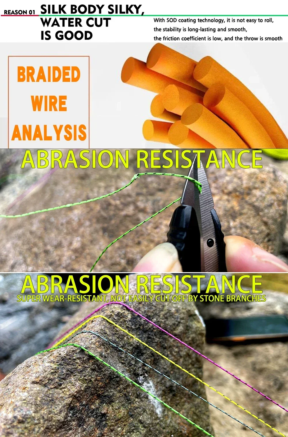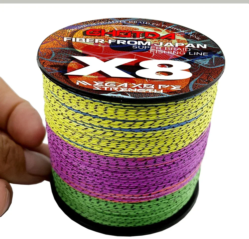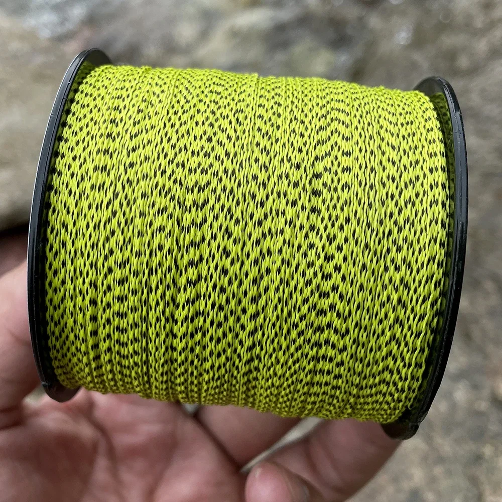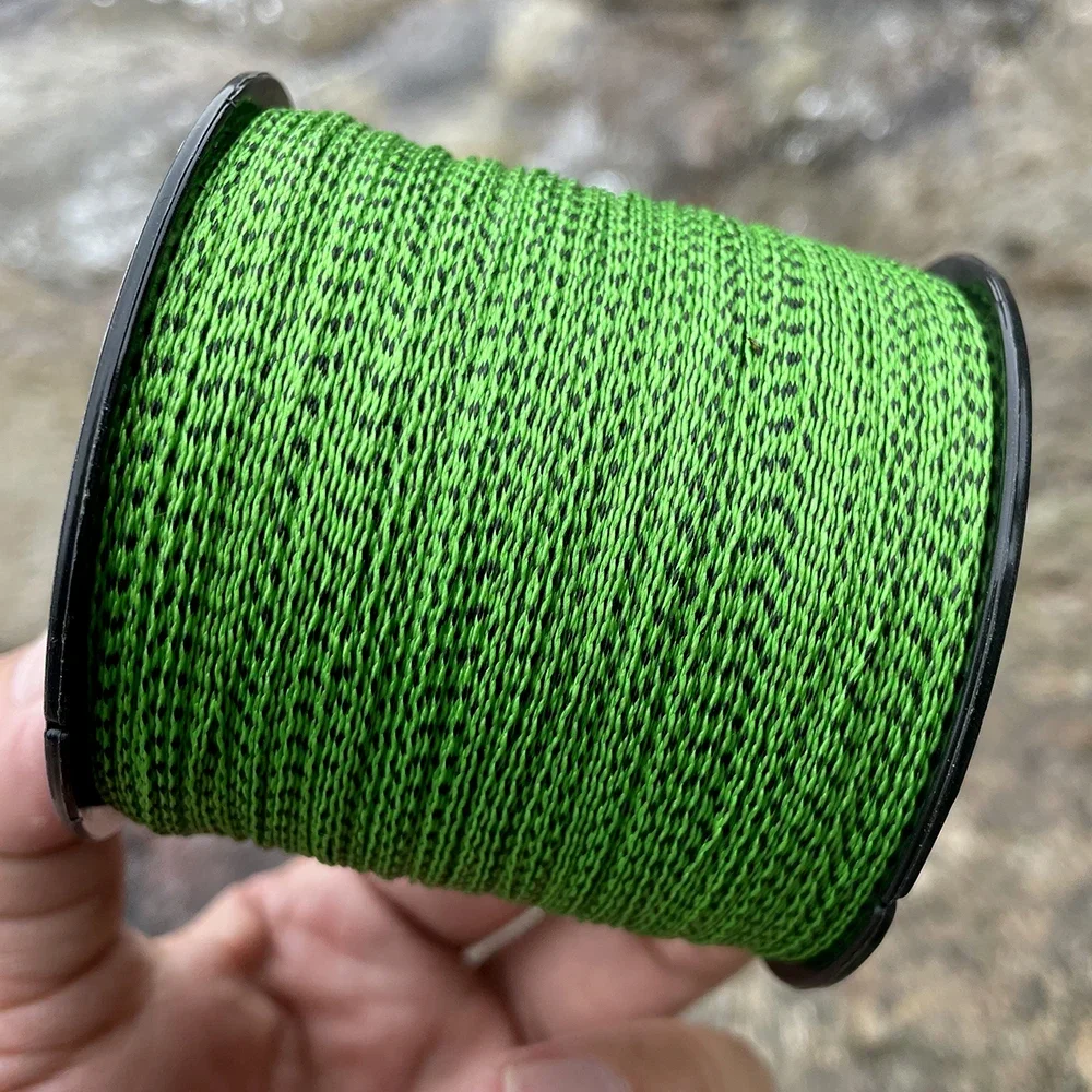 1: Línea de PE X8 Strands, construcción única de trenza moteada, hecha de fibras de PE de ultra alta resistencia.