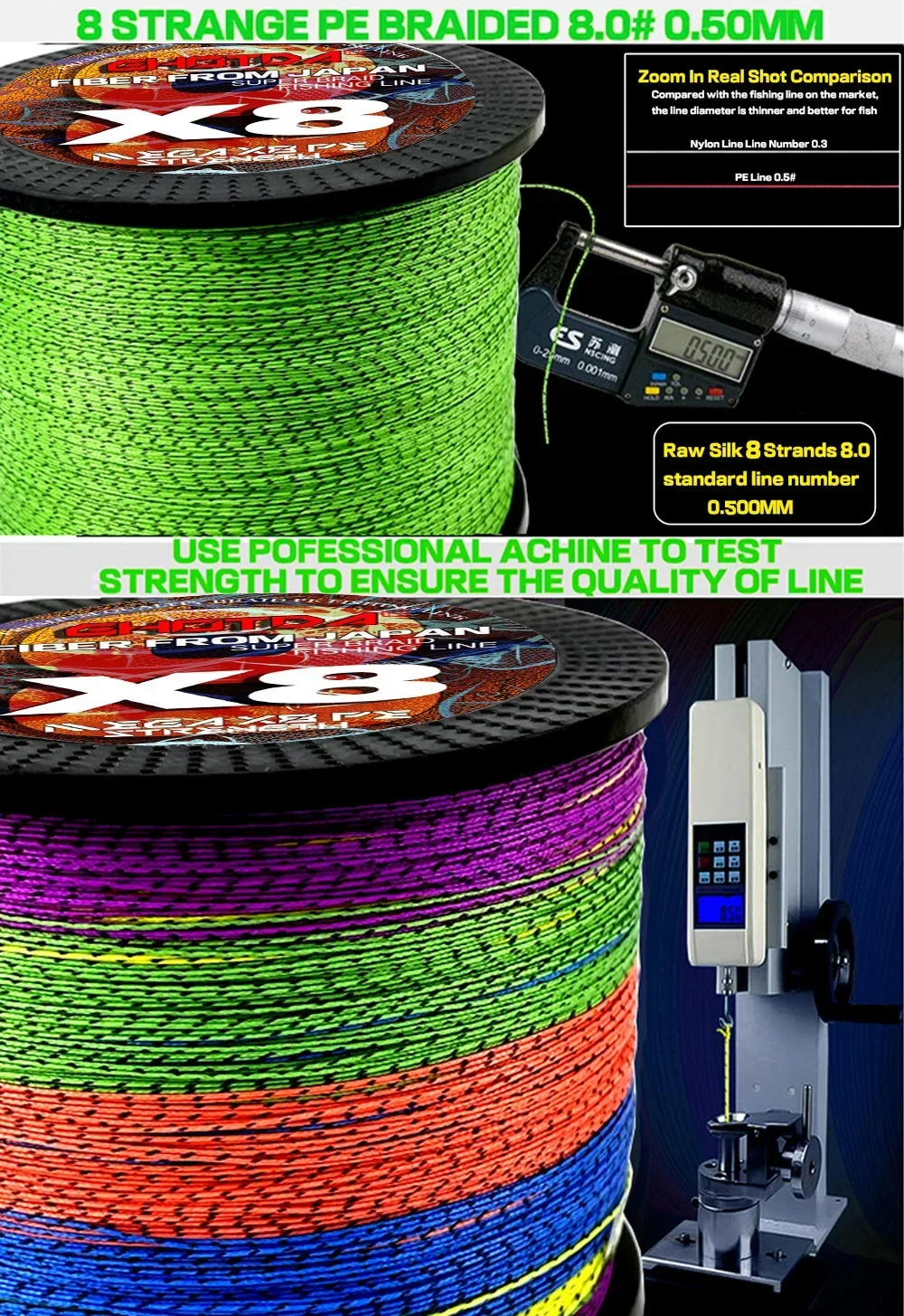 1000M 8 hebras hilo de pescar trenzado X8 multifilamento PE manchado Invisible PE línea 8/22/31/39/43/52/61/78LBS diámetro 0,14-0,5 mm
