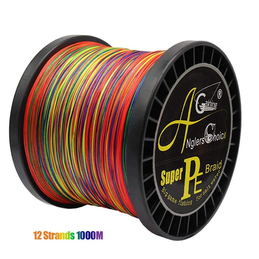 Línea de pesca trenzada de 12 hilos, 1000m, 1500m, línea trenzada resistente a la abrasión, línea de fundición larga y suave extremadamente delgada para agua salada