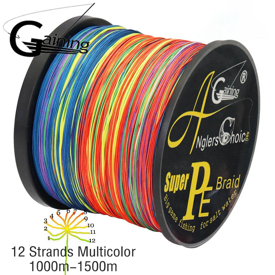 Línea de pesca trenzada de 12 hilos, 1000m, 1500m, línea trenzada resistente a la abrasión, línea de fundición larga y suave extremadamente delgada para agua salada