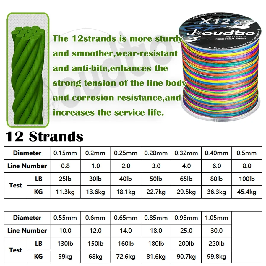 Línea de pesca de 12 hebras, 1500M, 1000M, trenzada, PE, multifilamento fuerte, duradera, trenza de pesca de agua salada