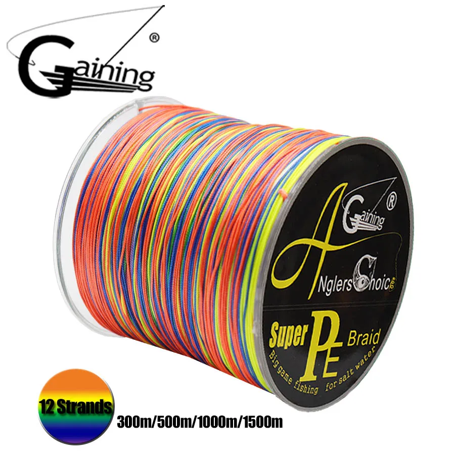 Linha de pesca trançada com 12 fios, multicolorida linha de pesca, super forte, 300m/500m/1000m/1500m linha japonesa de multifilamento 35-180lb pe
