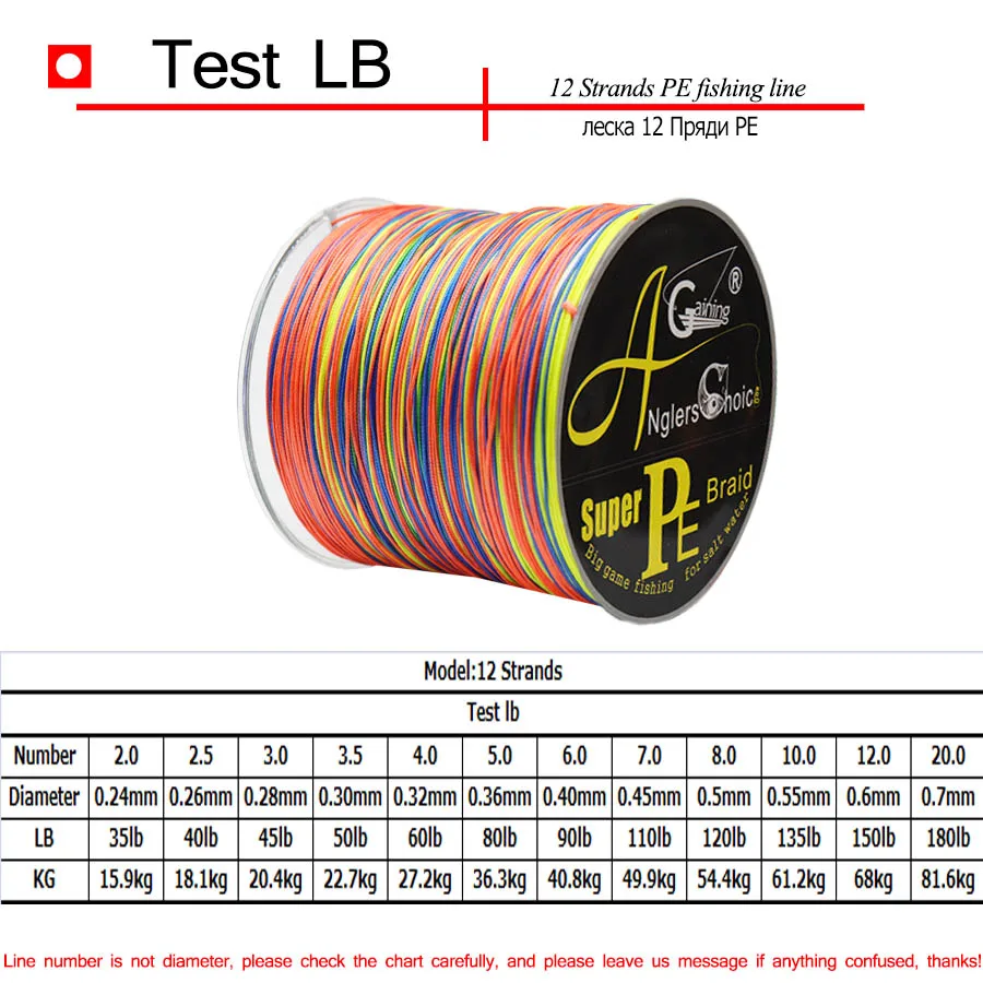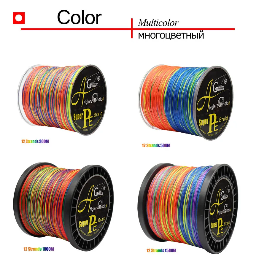 Línea trenzada de 12 hebras, Sedal Multicolor de 300m/500m/1000m/1500m, multifilamento japonés superfuerte de 35-180LB, línea de PE