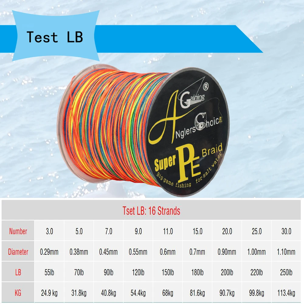 Línea de PE de 2, 16 hebras, material de Japón, construcción trenzada única, hecha de fibras de PE de resistencia ultraalta.