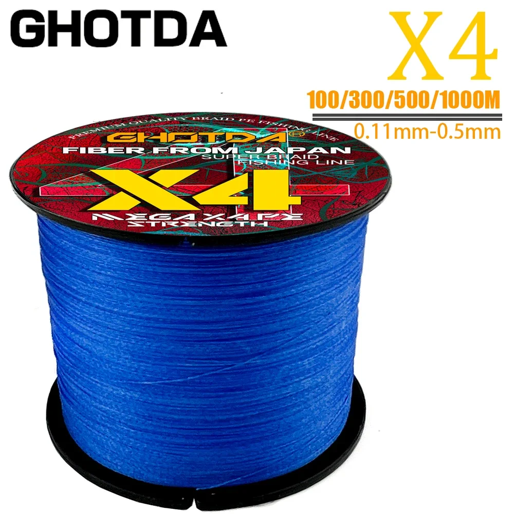 Línea de pesca trenzada, 300M, 500M, 1000M, 100M, 4 hebras, multifilamento, 10-80lb, para pesca de carpa en agua salada, 0,11mm-0,5mm