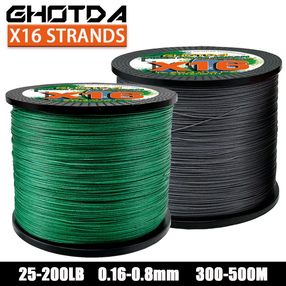 GHOTDA 16 hebras 500M 300M Anti mordedura línea de pesca trenzada extremadamente fuerte 25LBs-200LBs 4 colores cables multifilamentoLa NUEVA línea de pesca trenzada de 16 hilos es la elección perfecta para los pescadores ávidos. Esta línea de pesca de alta resistencia, antimordeduras y resistente al desgaste está diseñada con la última tecnología de tejido para garantizar la máxima durabilidad y dureza. Con una mayor densidad y una mayor fuerza de tracción, esta línea proporciona un mejor rendimiento que las líneas tradicionales de 4, 8, 9 y 12 hilos.