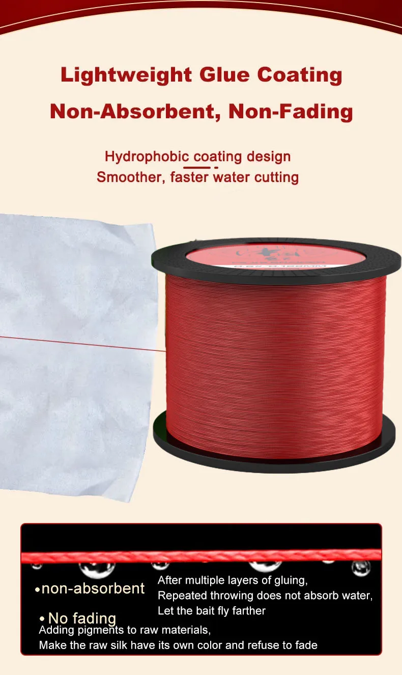 ● Línea de PE de 8 hebras, diámetro de línea preciso, use tecnología de bloqueo de color de Japón, obtenga un color de línea estable, nunca se desvanece