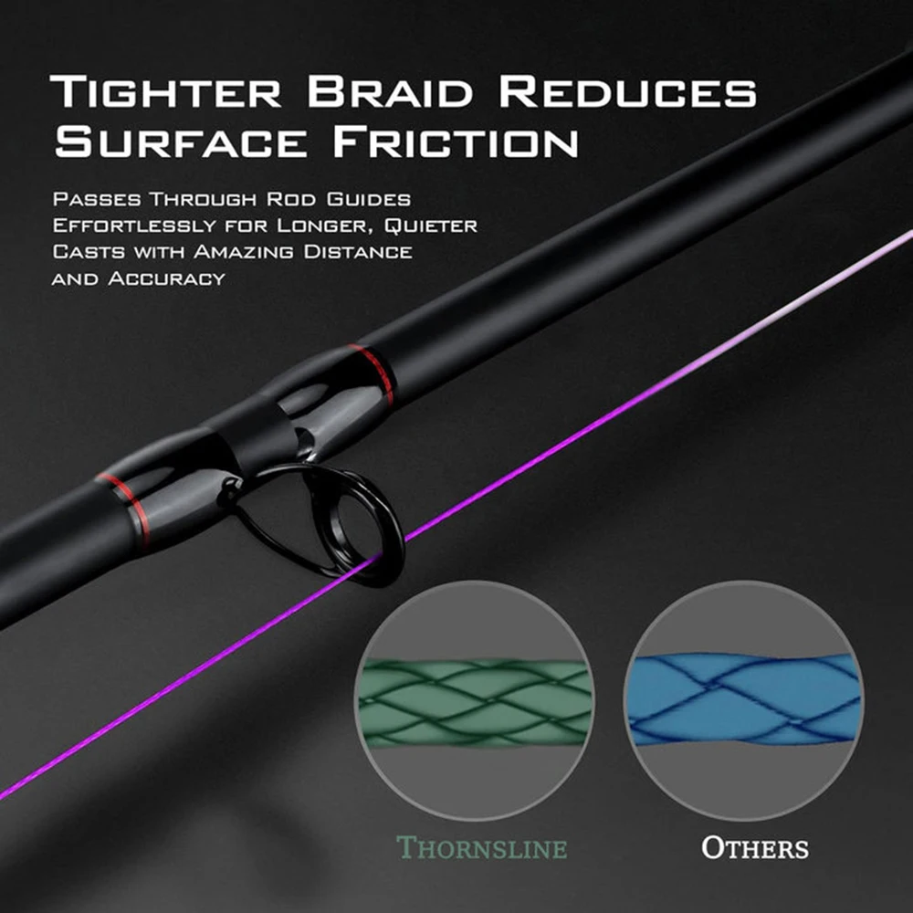 [FUERTE] Este hilo de pescar trenzado de primera calidad de ThornsLine está diseñado con polietileno de peso molecular ultra alto, una de las fibras tejidas más fuertes de la tierra;Esta línea trenzada está diseñada para ser súper resistente y soportar las condiciones más exigentes;Cuando necesites un hilo de pescar trenzado tan duro como tú, confía únicamente ThornsLine.
