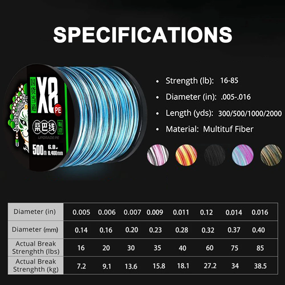 [SEGURO PARA COLOR] Diga adiós a la trenza de pesca que pierde color rápidamente con el tiempo;Esta avanzada trenza de hilo de pescar utiliza tecnología que no destiñe con pigmentos resistentes a los rayos UV que no se desvanecen fácilmente cuando se exponen a los elementos;Para un hilo de pescar de colores brillantes y vibrantes, ThornsLine es la respuesta