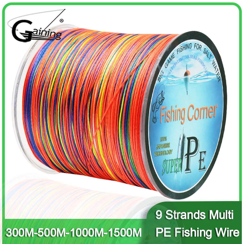 Línea de pesca multifilamento para agua salada, 9 hebras, hilo de pescar de PE trenzado, 300M/500M/1000M/1500M, Multicolor, 20LB-200LB