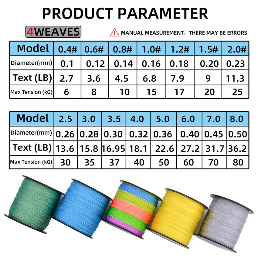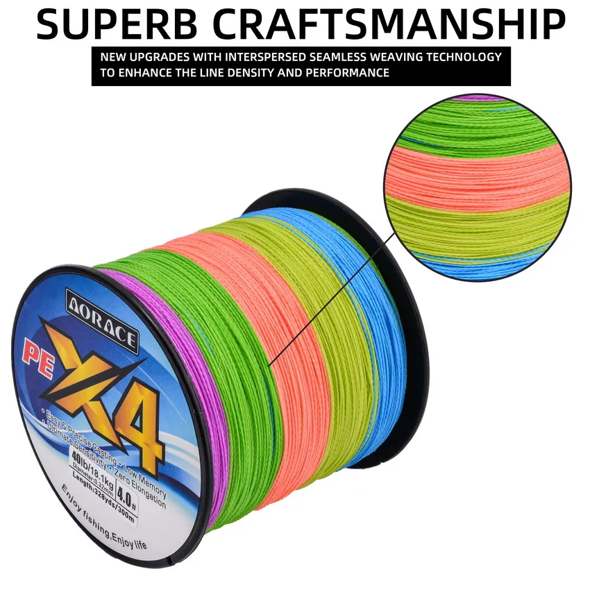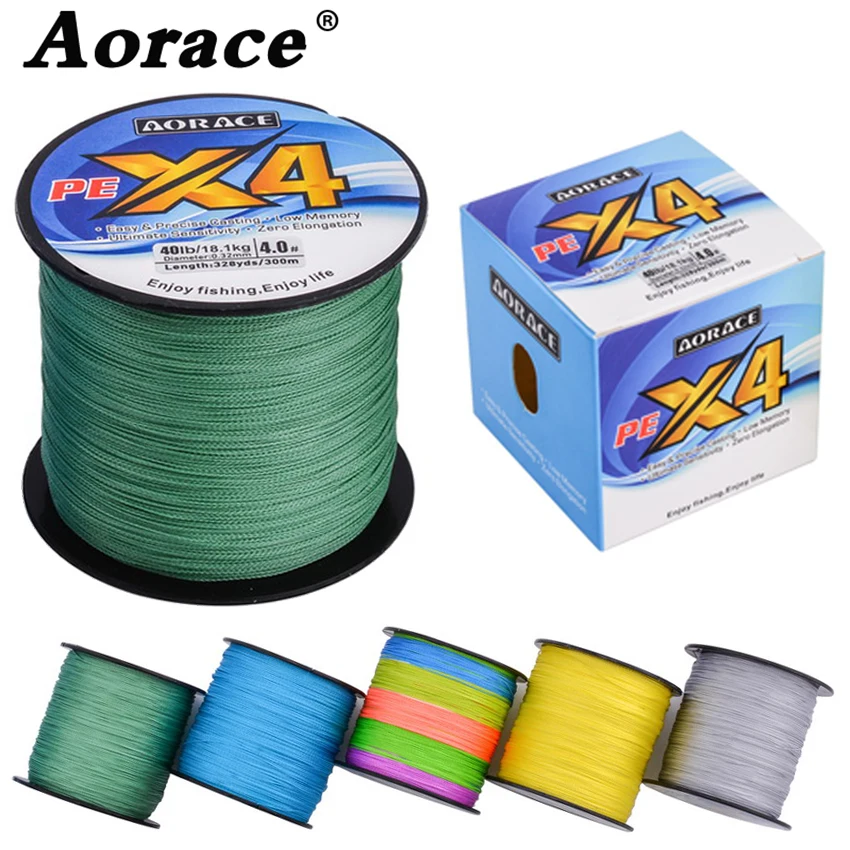 Línea de pesca trenzada Aorace 4, longitud: 300m/330yds, diámetro: 0,1mm-0,5mm, tamaño: 6-80lb, línea flotante trenzada de PE japonesa