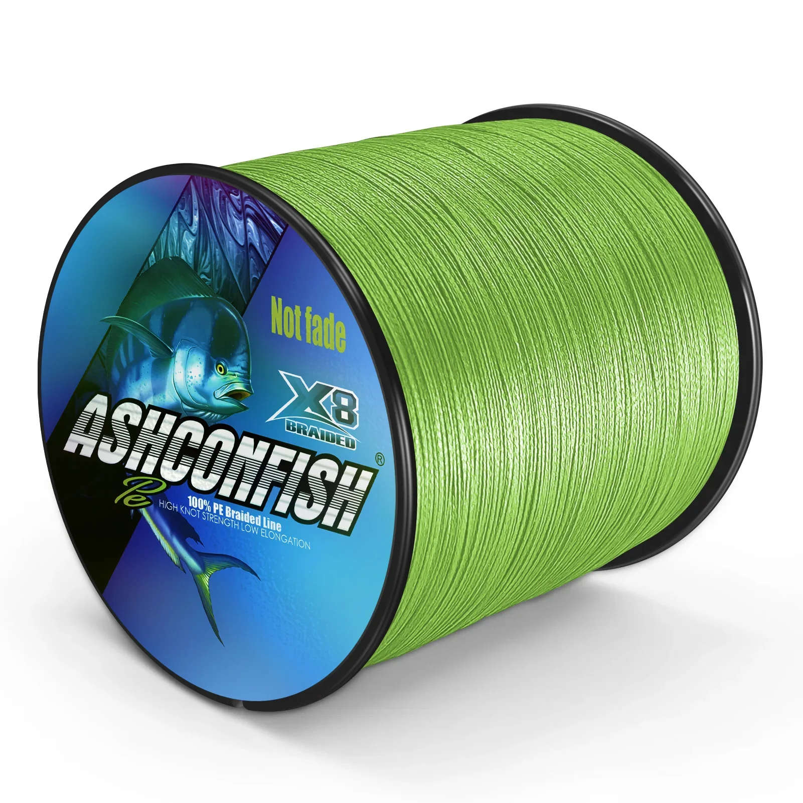 Línea de pesca trenzada Ashconfish X8, súper fuerte, 8 hebras, 6LB-300LB, multifilamento, línea de PE, 100M, línea trenzada, pesca, no se decolora, Color
