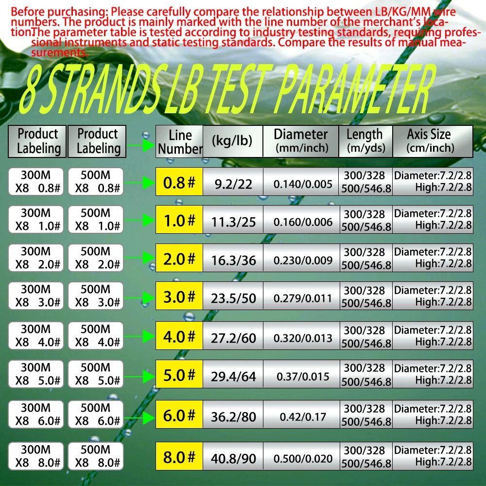 Atención: La etiqueta del hilo de pescar utilizará la descripción del modelo popular desde el lugar de origen.Compare cuidadosamente la tabla de parámetros del producto y determine el modelo antes de comprar.