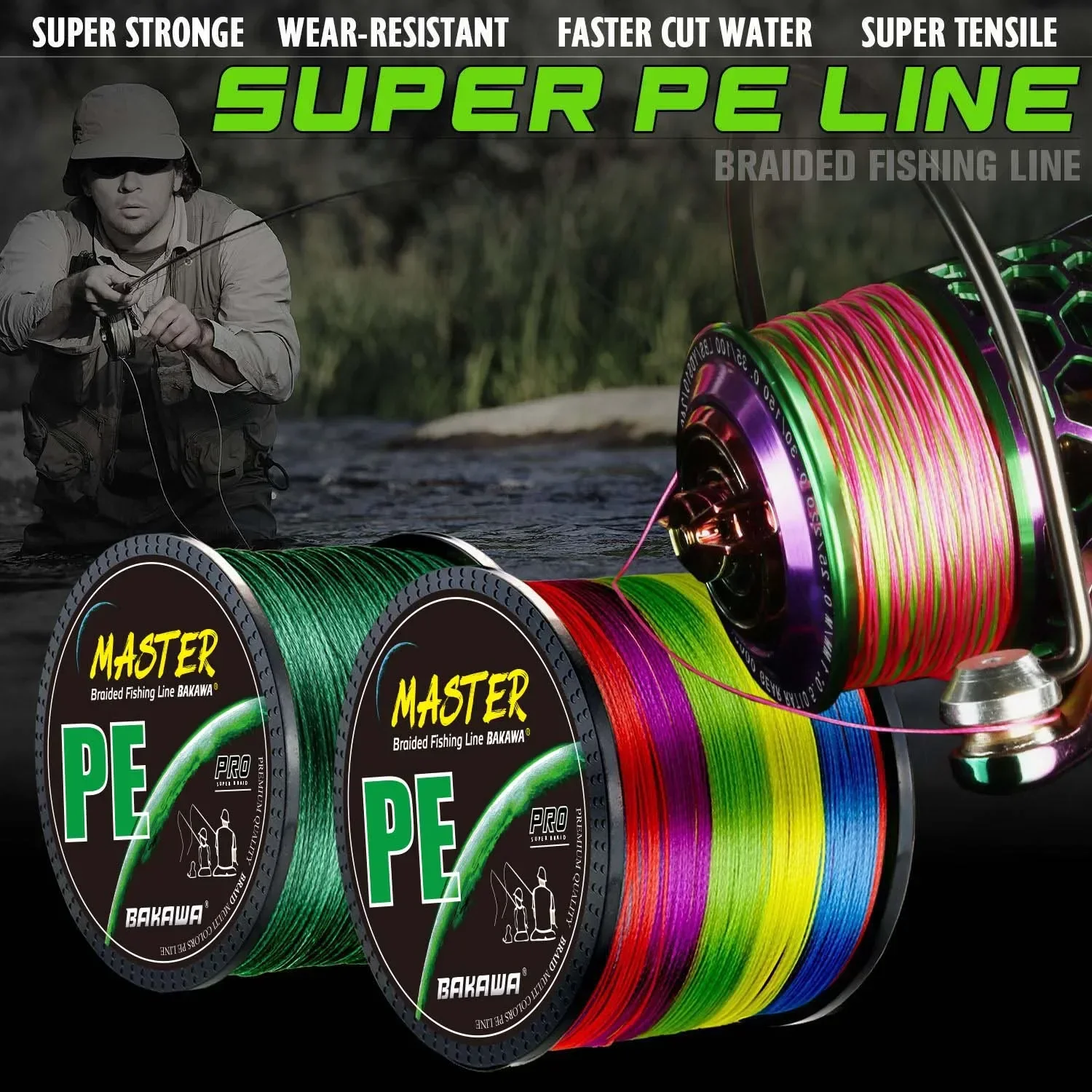 Línea de Pesca trenzada BAKAWA X9 300M 500M 1000M Japón PE tejido alambre multifilamento accesorios de Pesca de carpa Pesca de agua salada