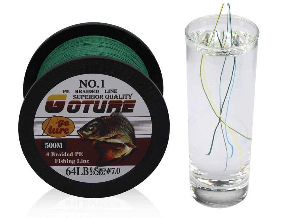 Línea de pesca trenzada Goture, 4 hebras, 500M/547 yardas, hilo de pesca multifilamento de PE, 12LB-80LB, cordón japonés fuerte para pesca de carpa