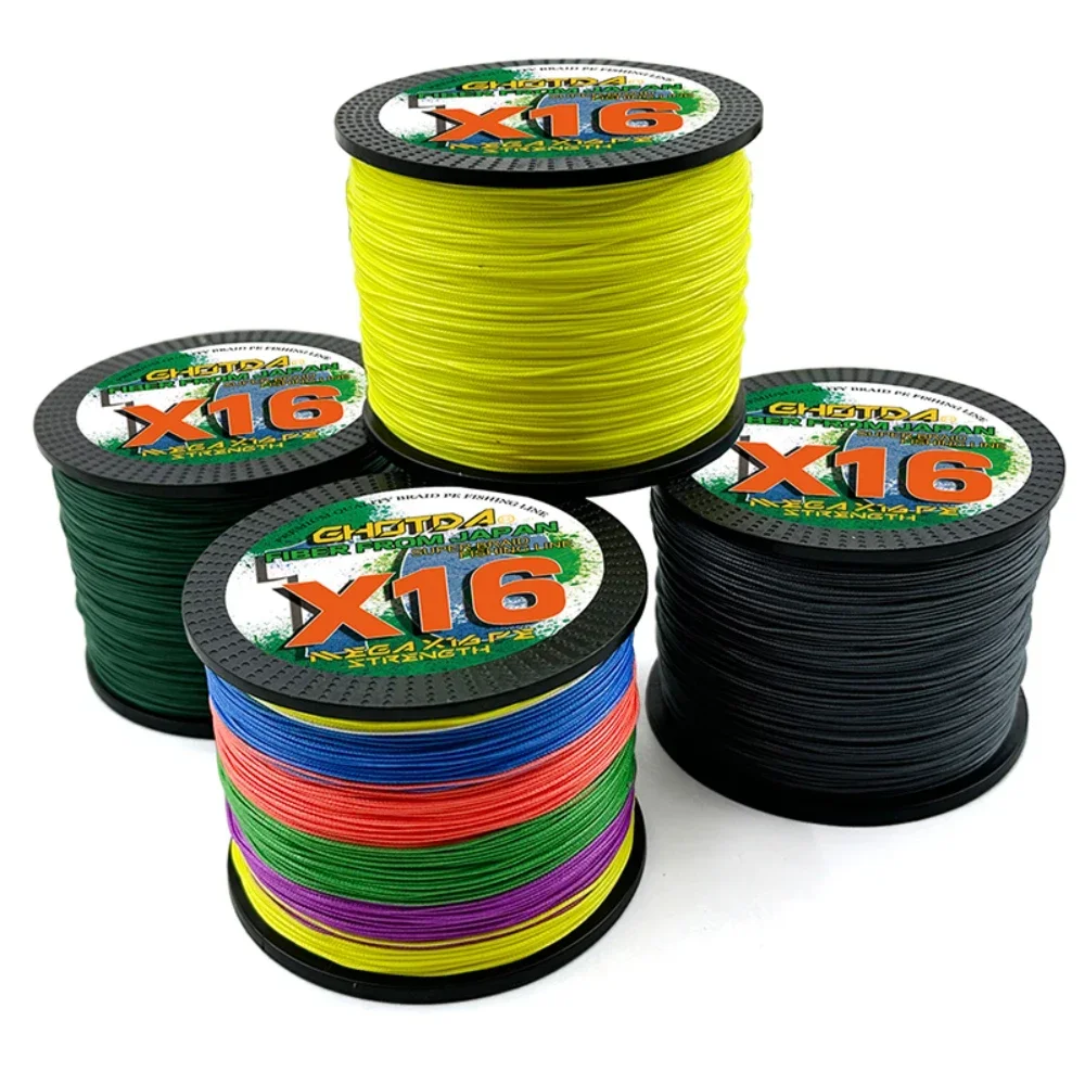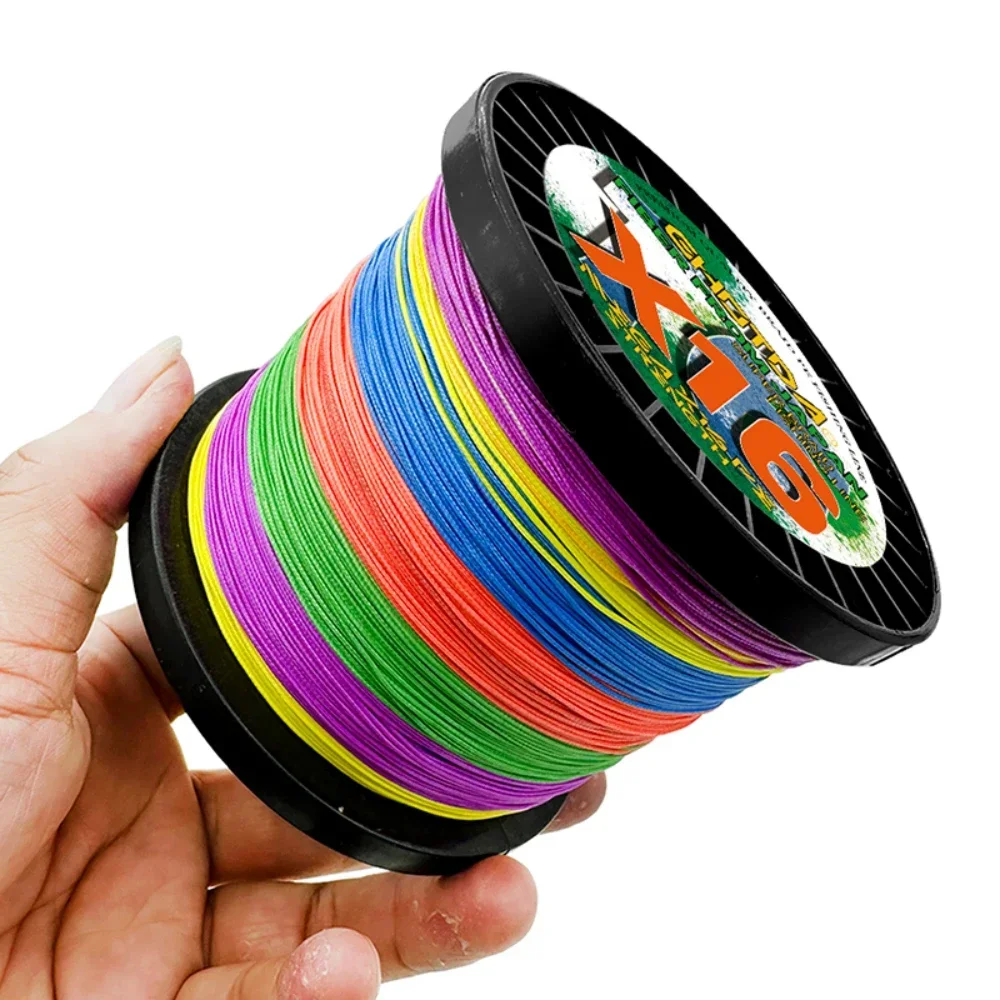 Línea de pesca trenzada multicolor multifilamento de 16/4/8 hebras de alta intensidad, alambre de mosca de carpa de 500M, 0,11-0,8 mm, súper fuerte, 4,891 kg