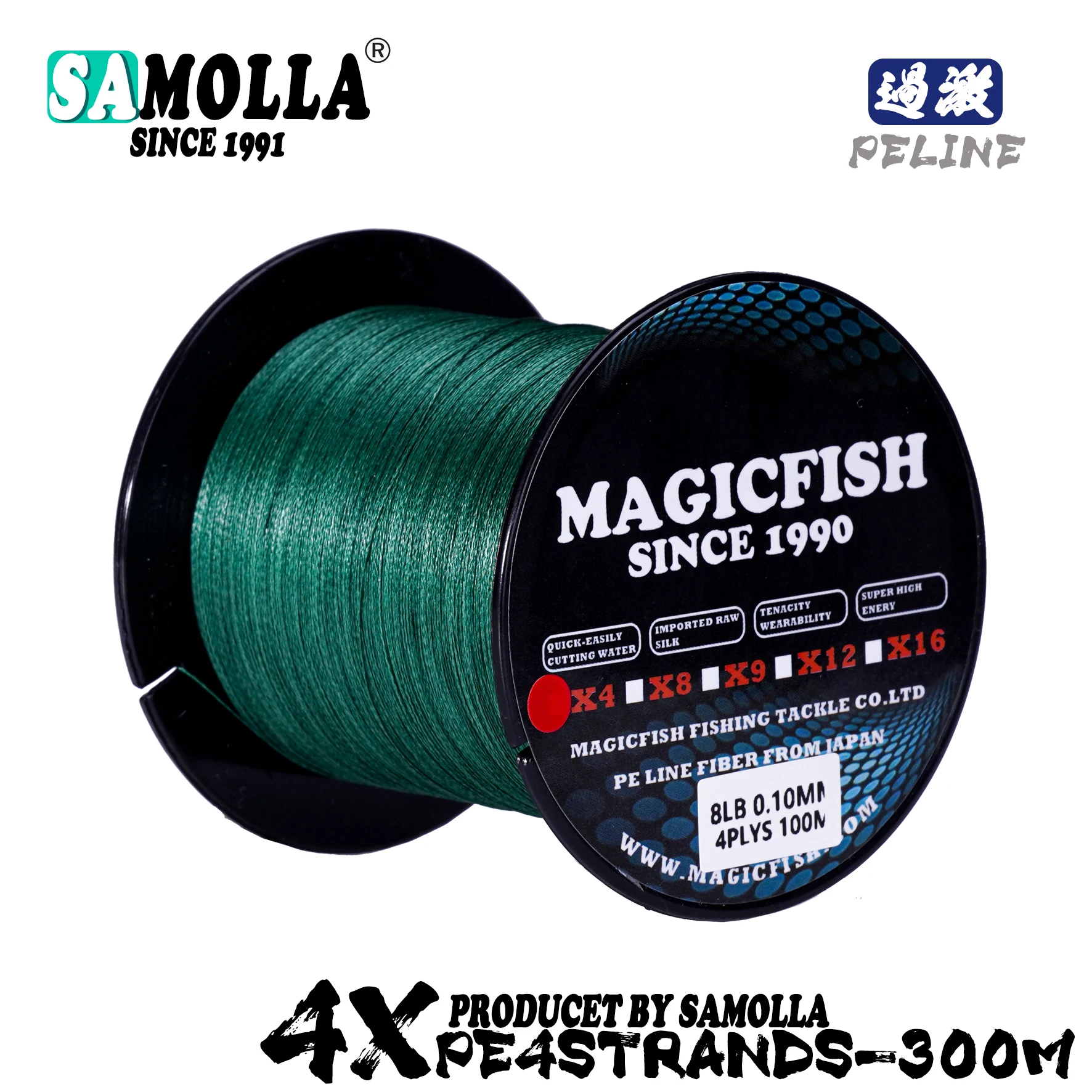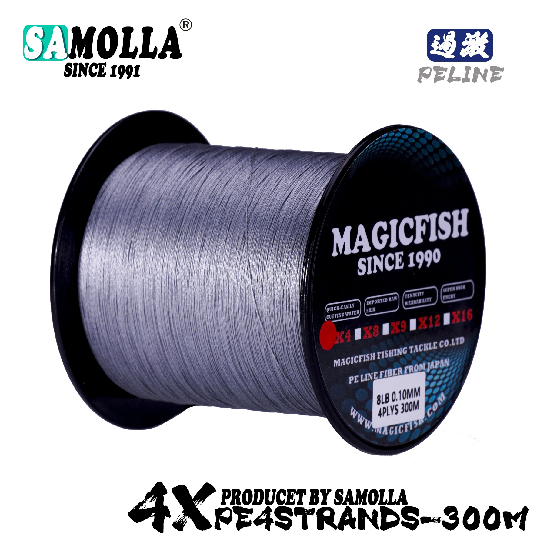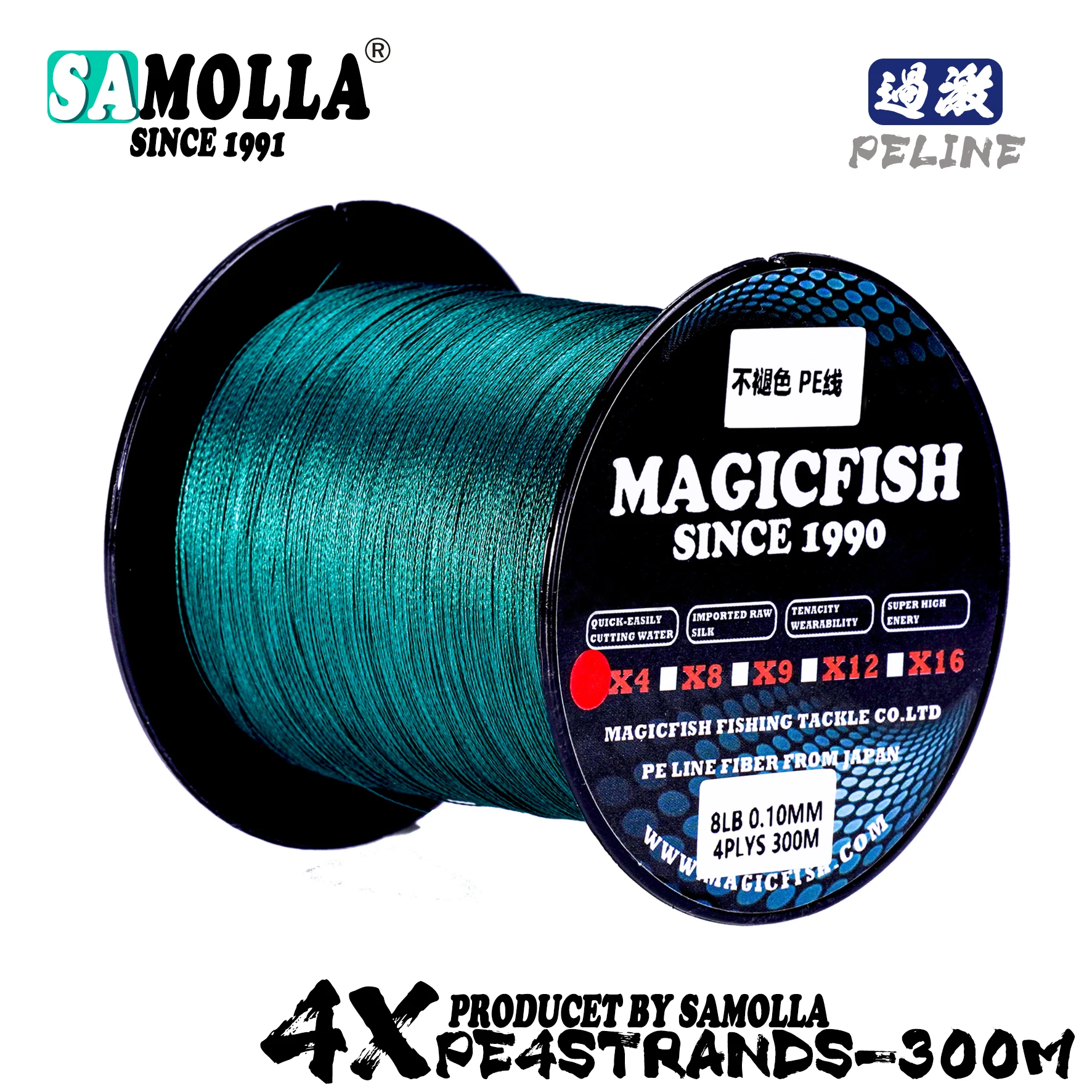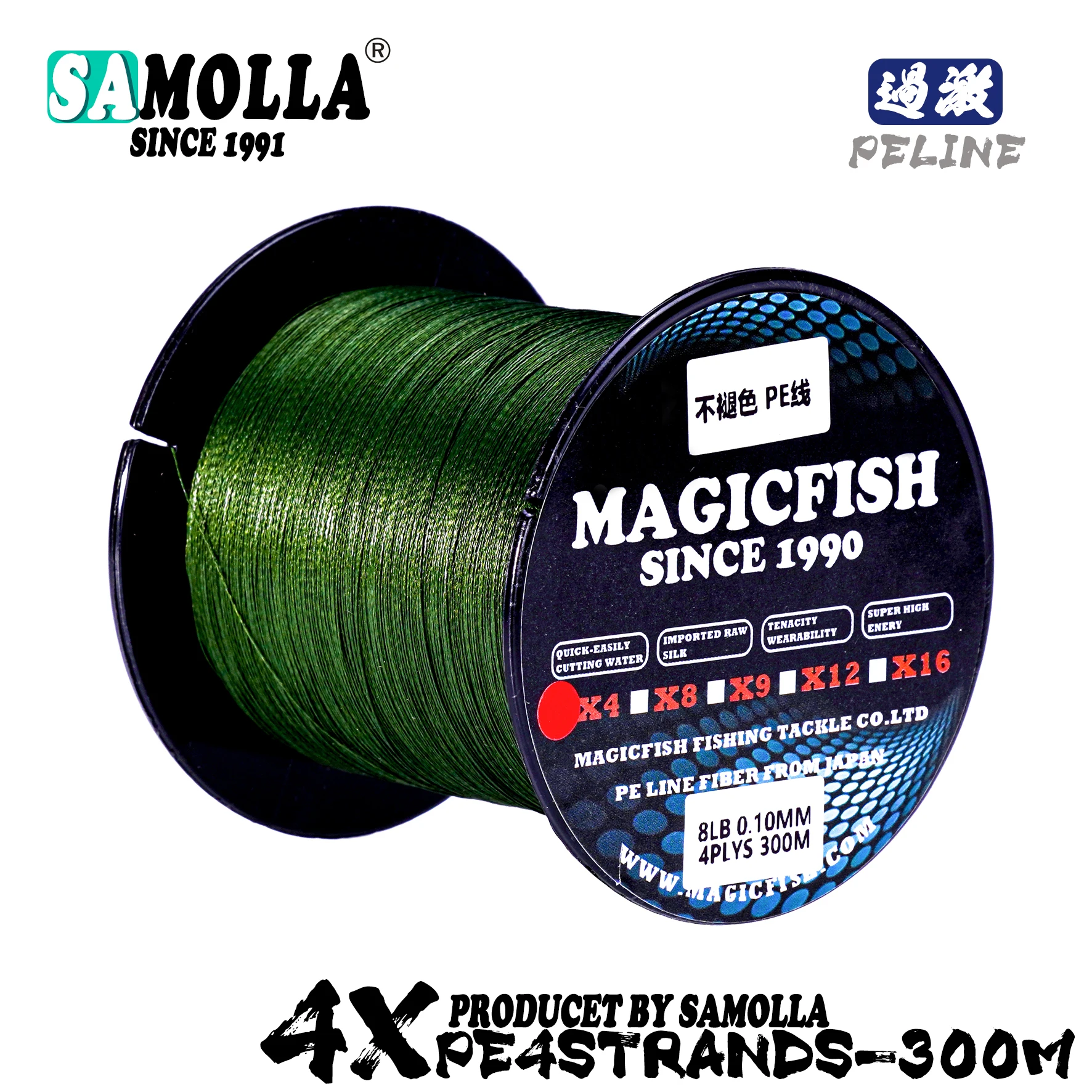 1, MAGICFISH marcas UHMWPE X4 serie línea de pesca 150M 300M 500M 4 hebras trenzada línea de pesca multifilamento PE línea 15 -100LB