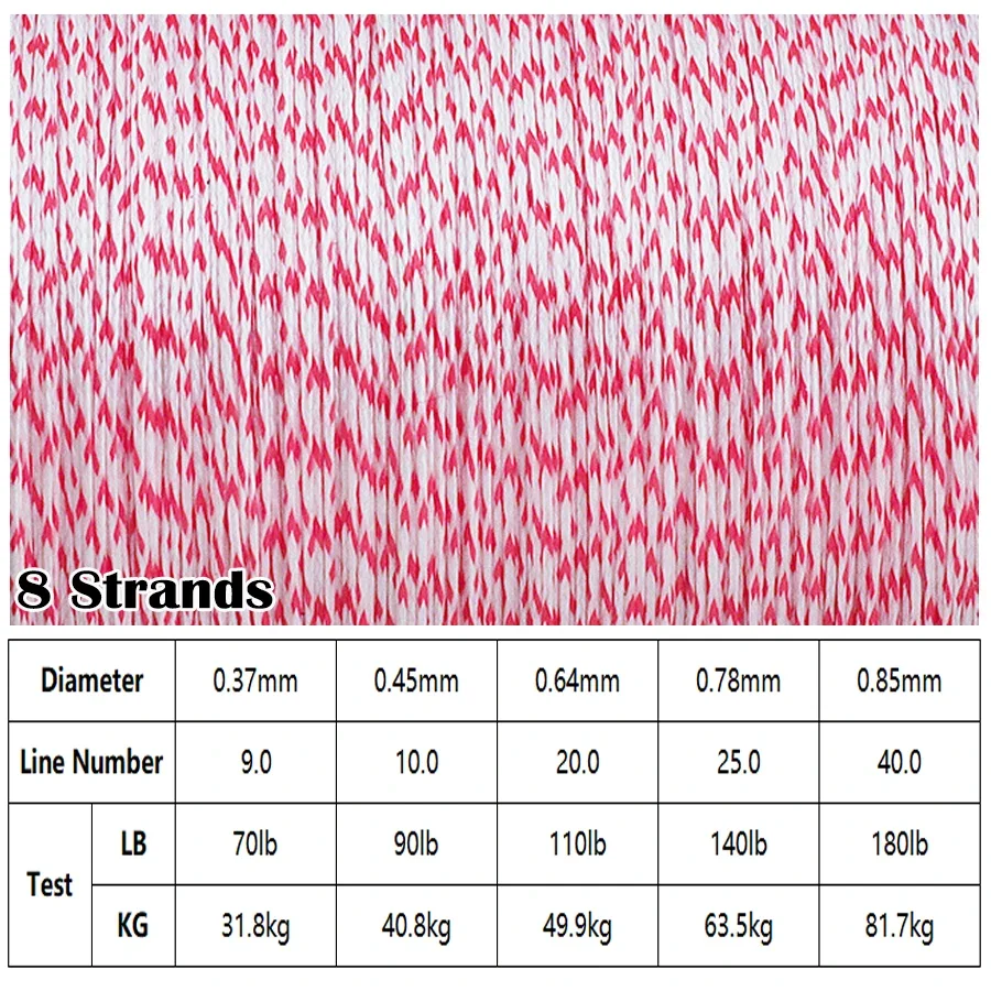 Línea de Punto 8 hebras PE multifilamento trenzado línea de pesca 70LBs -180LBs pesca PE trenzado ayudar anzuelos línea 300M/328 yardas rojo manchado Invisible Alambre de pesca