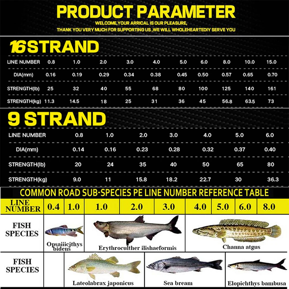 Línea de pesca trenzada multifilamento súper fuerte, 16/9 hebras, 300M, 0,14mm-0,7mm, cable principal Invisible para pesca de carpa y lubina, 9-73kg