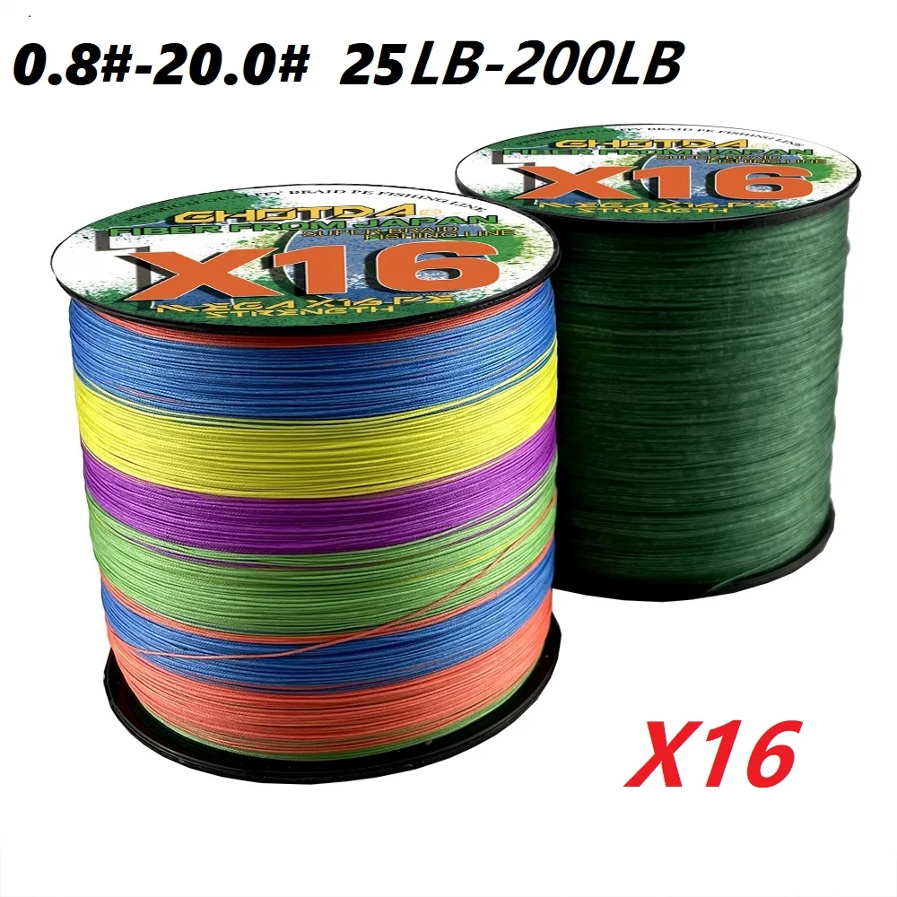 Línea de pesca trenzada de PE de 16 hebras, herramienta de línea de pesca de mar de carpa, multifilamento, alta resistencia, 25-200LB, 100M, nueva actualización