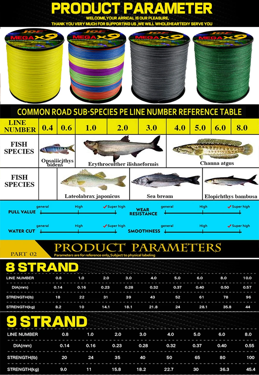 1pc * Fishing lineSIZE CHARTNote: Line number is not diameter, please check the chart carefully, and please leave us message if anything confused, thanks!