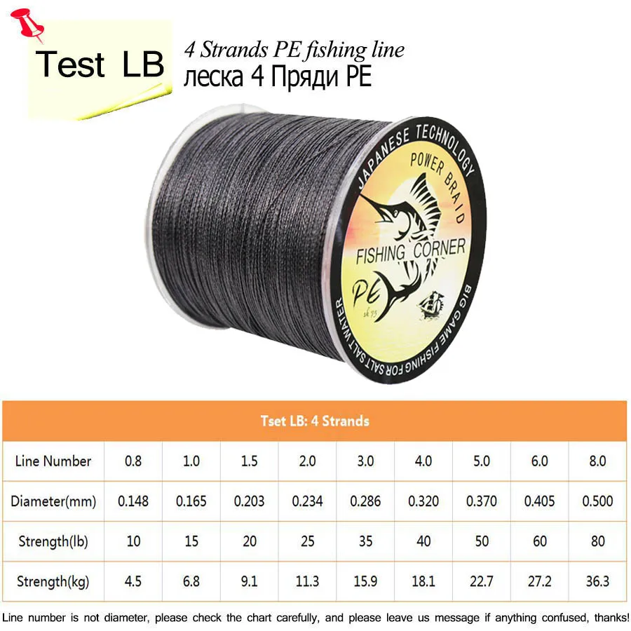Línea de pesca trenzada de PE de 4X 500M, línea de pesca de mar de multifilamento japonés súper fuerte, línea de carpa de 10LB-80LB, línea de trucha