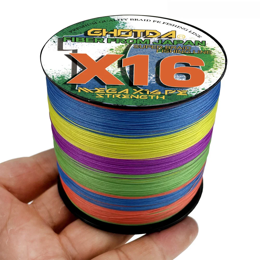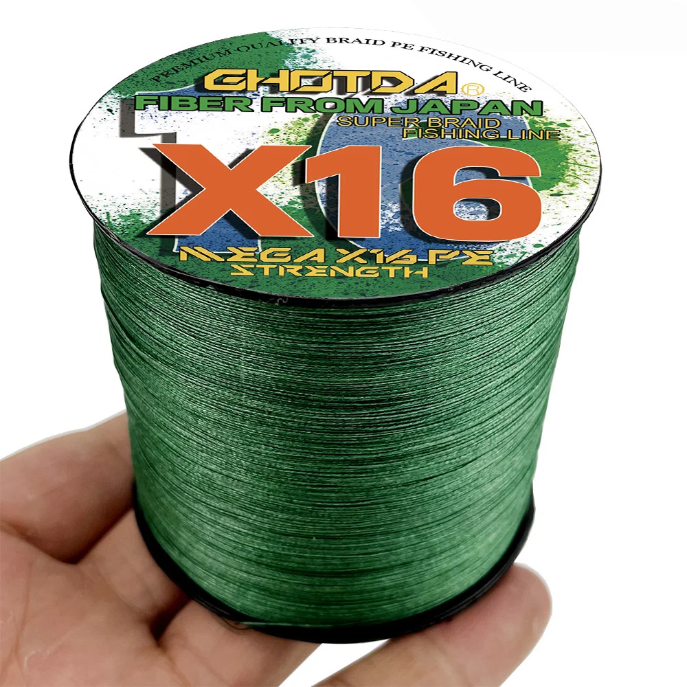 Línea de pesca trenzada de PE suave y duradera X16, 16 hebras, núcleo de hilo X súper fuerte de 25-200 libras, multifilamento de 100M-1000M, 0,16mm-0,80MM