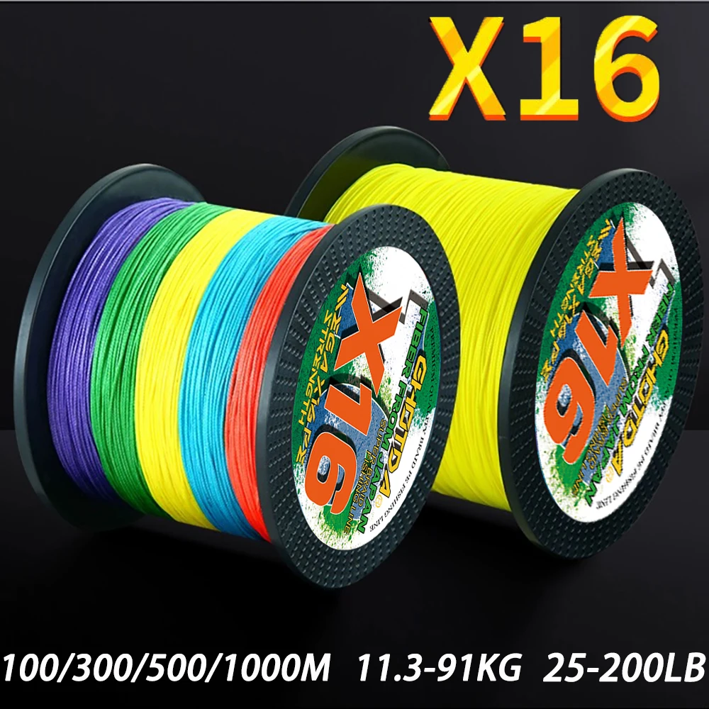 Línea de pesca trenzada de PE suave y duradera X16, 16 hebras, núcleo de hilo X súper fuerte de 25-200 libras, multifilamento de 100M-1000M, 0,16mm-0,80MM