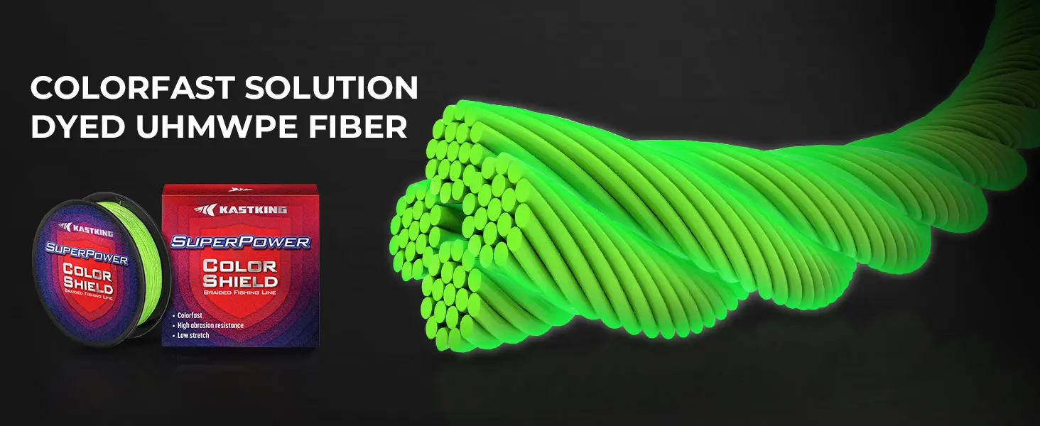 Proceso de coloración permanente Colorfast: el sedal trenzado SuperPower ColorShield está diseñado con UHMWPE teñido en solución para propiedades colorfast. El teñido en solución garantiza que el color permanezca durante toda la vida de la línea y no sangra, manteniendo su apariencia visual. Las líneas de pesca trenzadas SuperPower ColorShield tienen excelentes propiedades colorfast y conservan su color vibrante con el uso continuo, incluso después de la exposición repetida a la luz solar, el agua y las duras condiciones de pesca.