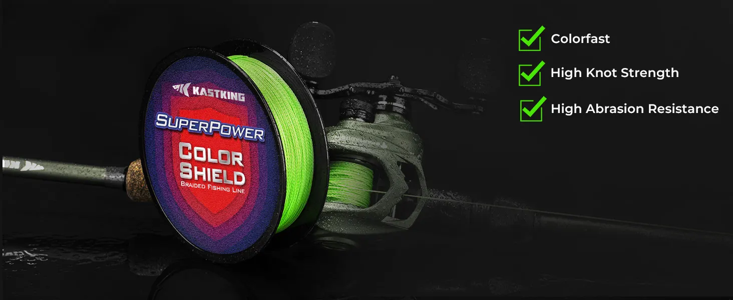 Alta resistencia del nudo: la alta resistencia del nudo del sedal trenzado SuperPower ColorShield permite lanzar, recuperar y luchar eficazmente contra los peces sin preocuparse por los fallos de los nudos que podrían provocar la pérdida de peces.