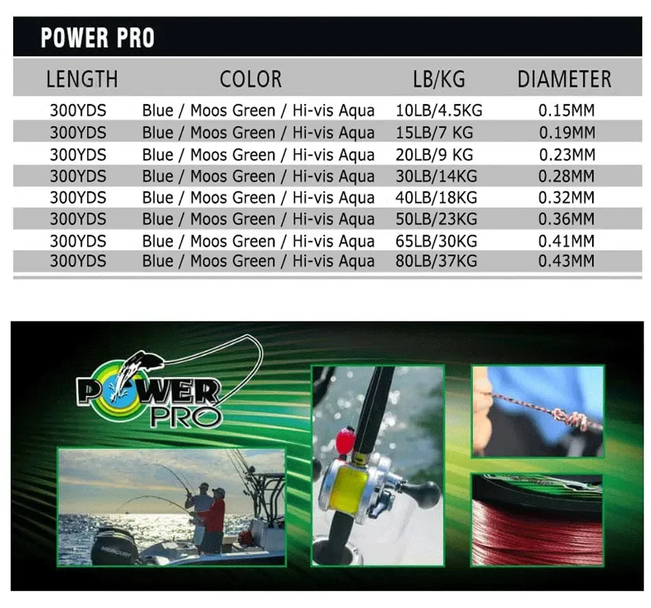 Línea de PESCA trenzada POWER PRO 8X, sedal de Super PE, EE. UU., 10-80lb, 8 hebras, 300yds