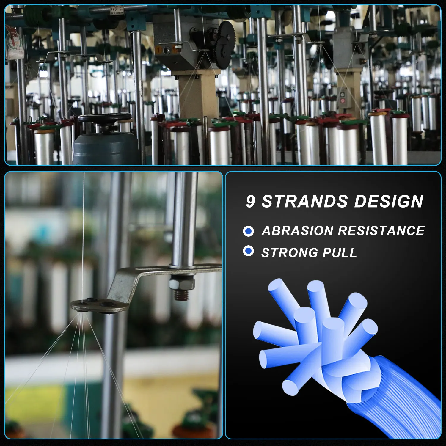 4.Estructura multifilamento súper trenzada X9: alta resistencia y alta tenacidad, buena resistencia al desgaste, baja ductilidad, suave y duradera, gran durabilidad, adecuada para uso a largo plazo.