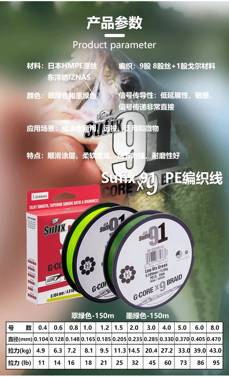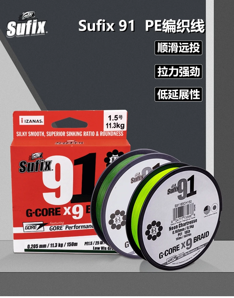 Línea de pesca trenzada SUFIX 91 X9, hilo de PE original, 2023 m ,14LB-95lb, supersuave, fuerte, para mar, novedad de 150