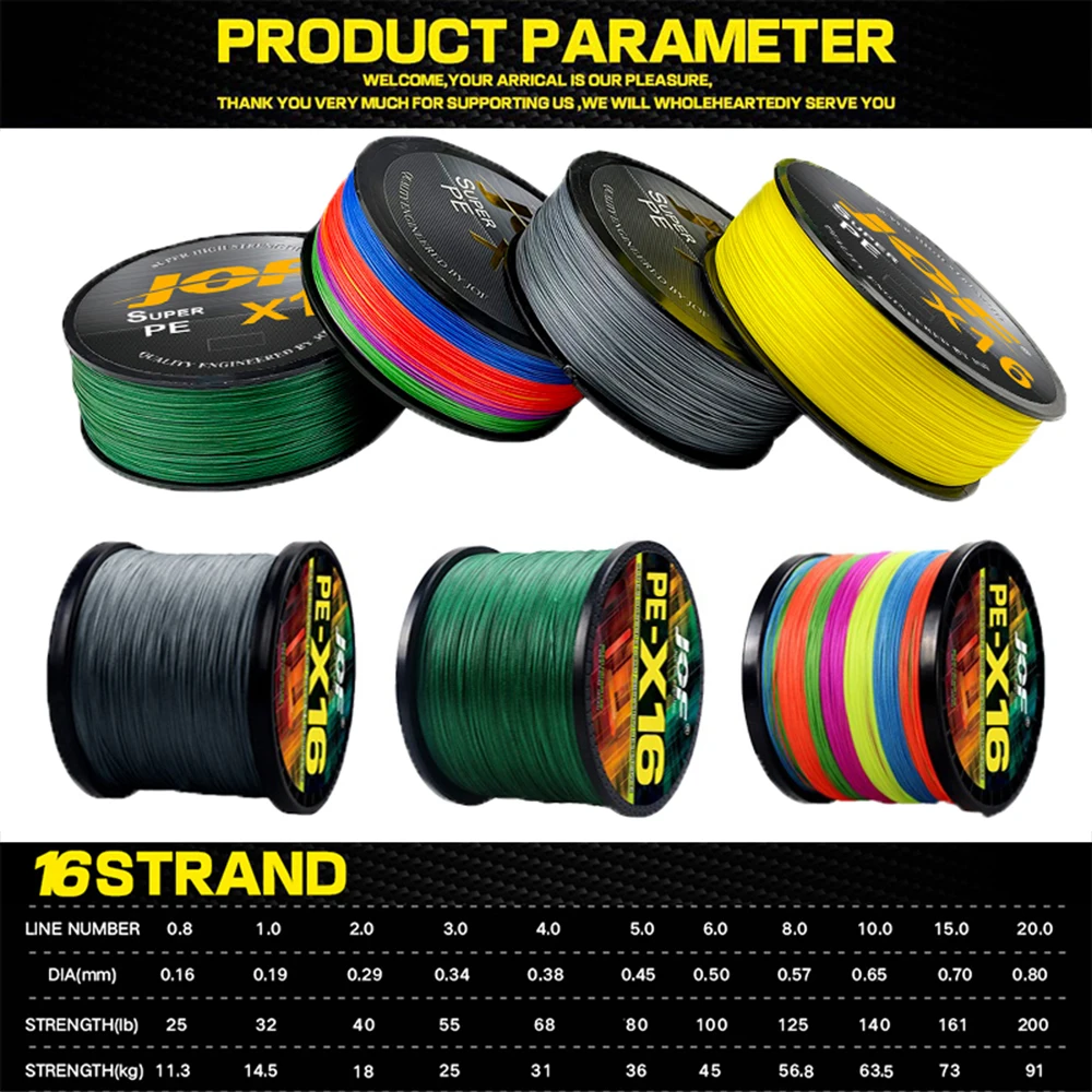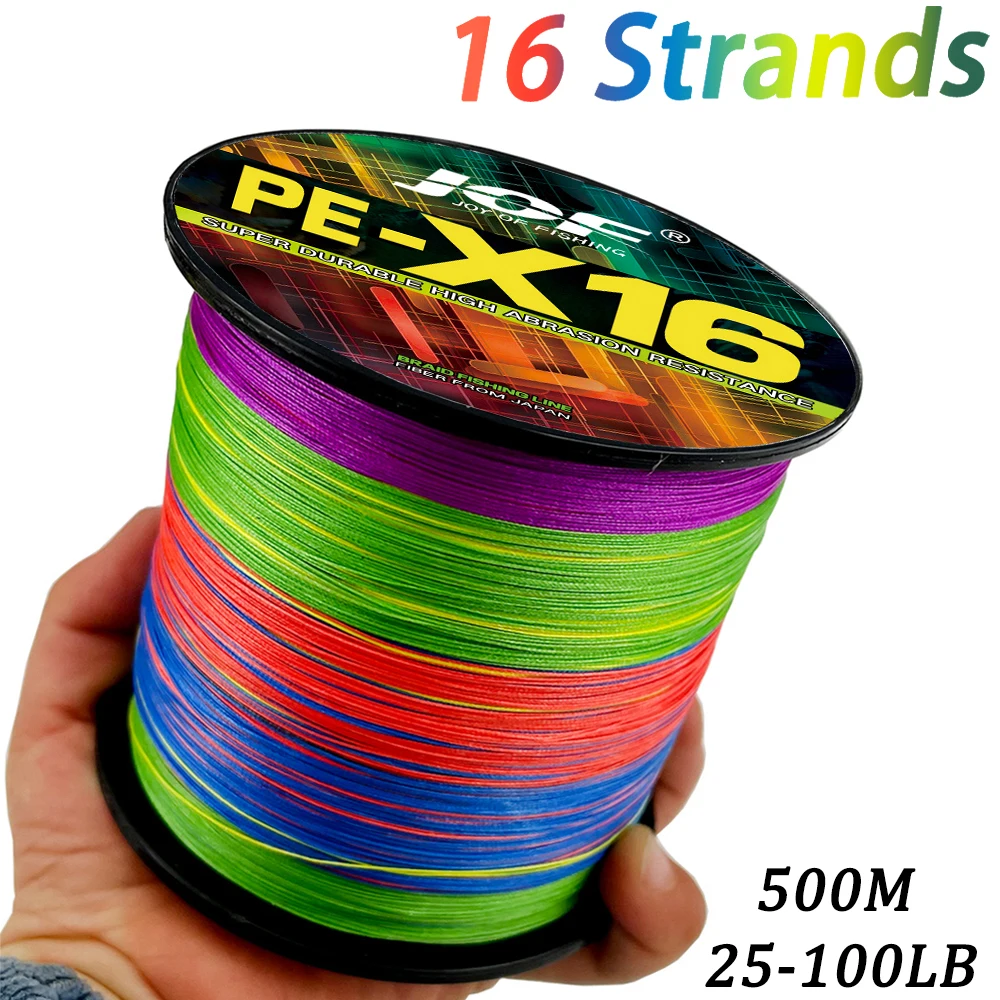 Línea de pesca trenzada súper fuerte de 16 hebras X16 PE Hollowcore 500M alambre pesca de carpa agua salada 25/32/40/55/68/80/100lbs