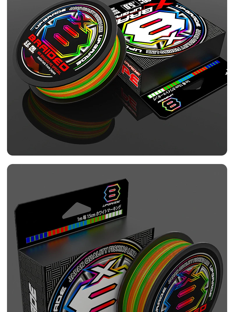 Línea de pesca trenzada de tipo hundimiento, sedal de PE X8, multicolor, de alto estength, para carrete de pesca de carpa, lubina, 14LB-80LB, nueva actualización de Japón