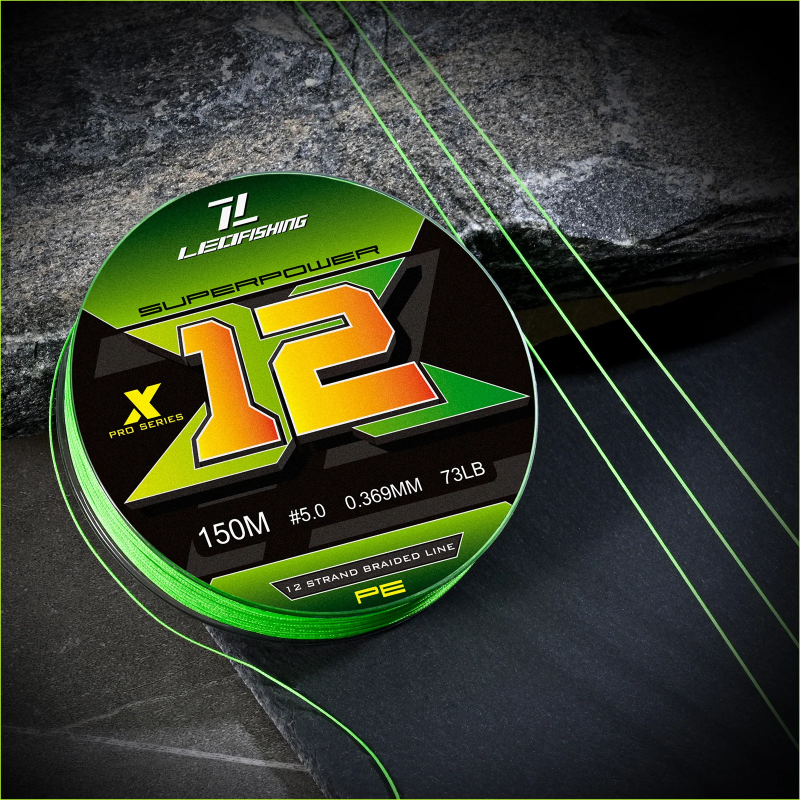 1: X12 línea: La línea de pesca adopta 12 tejidos, más circular que 4-tejidos y 8-tejidos y 9-teje líneas de pesca, muy adecuado para el lanzamiento de largo alcance.