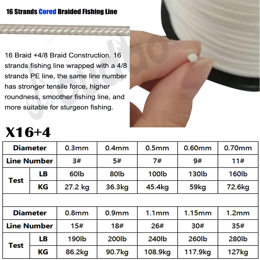 X16 + 4 alambre con núcleo trenzado 16 hebras 100M 300M PE línea de pesca trenzada extrema 60LBs-400LBs líneas de multifilamento para pesca de esturión Big Game