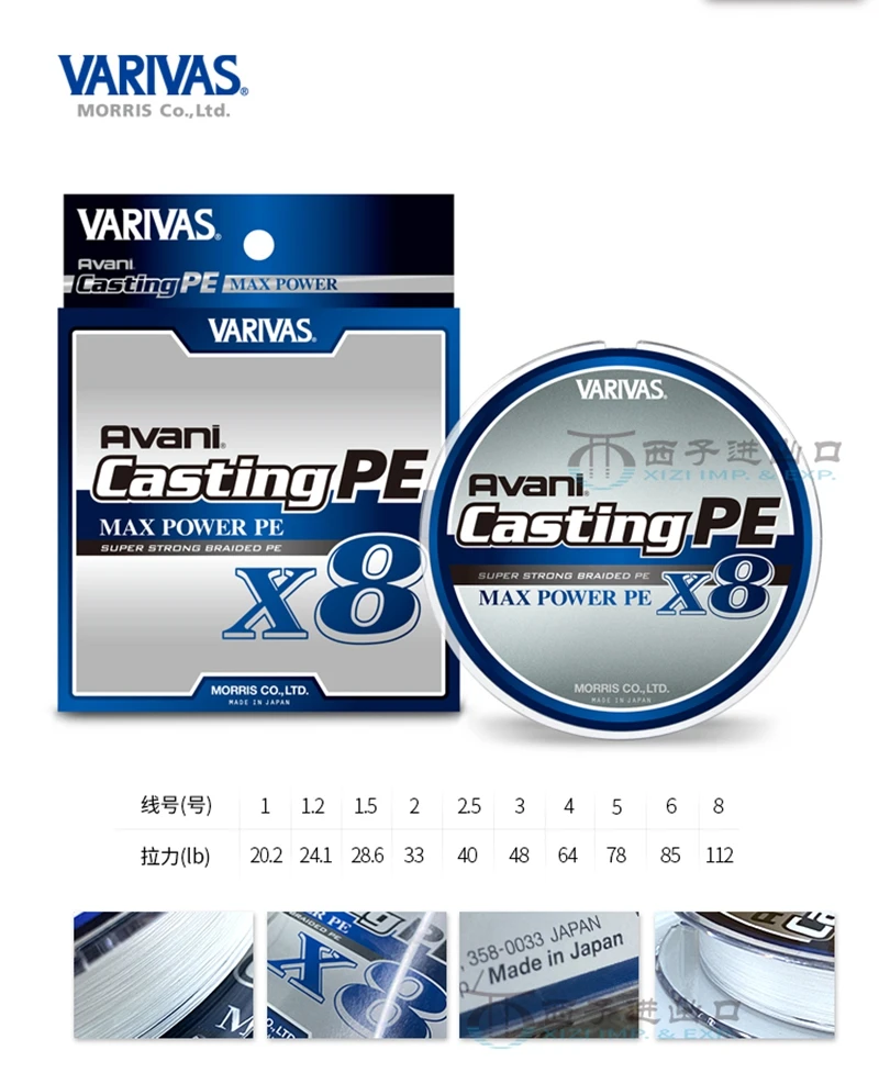 Línea de pesca VARIVAS 100% Original de Japón, línea de fundición de PE MAX POWER PE, línea de PE trenzada súper fuerte, 200m/300m, 33LB, 40LB, 64LB