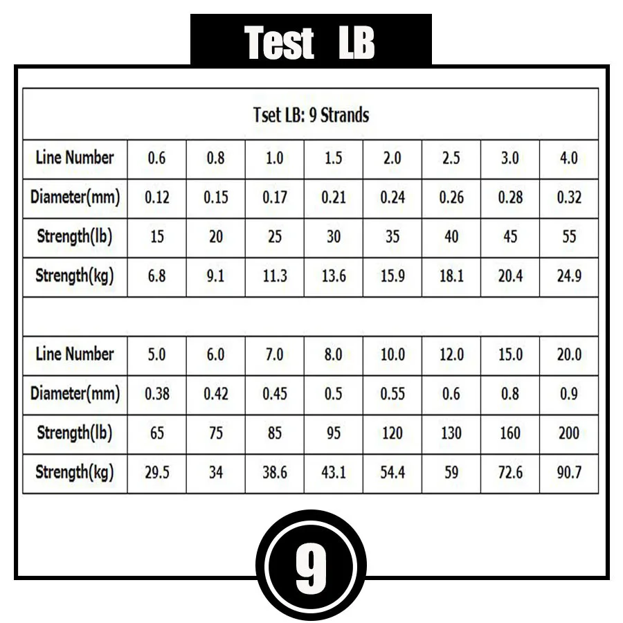 Line Number 6.0# : 0.42mm-75LB / 34KG, means the strength is 75lb (34kg)and the diameter is 0.42mm.