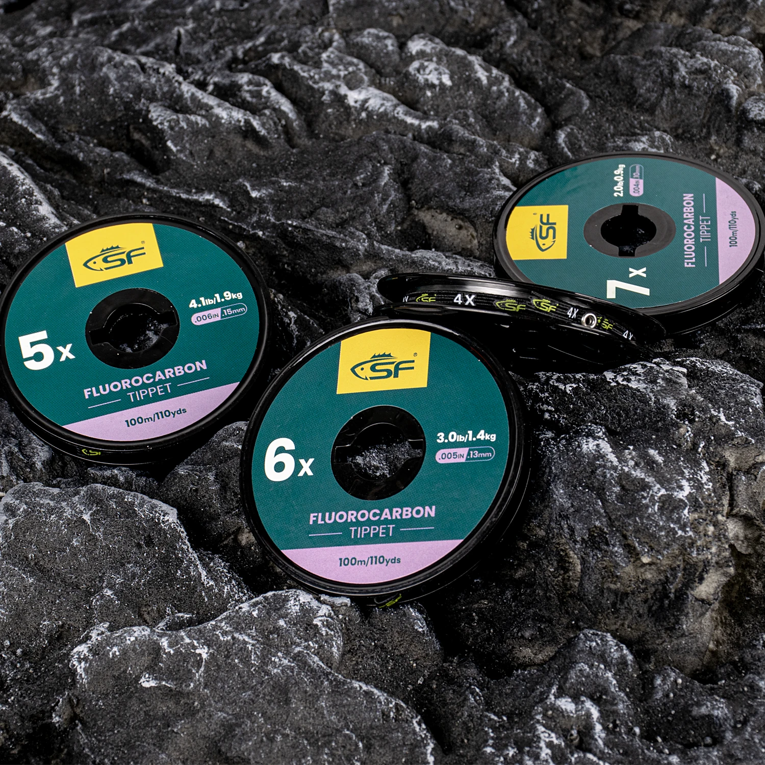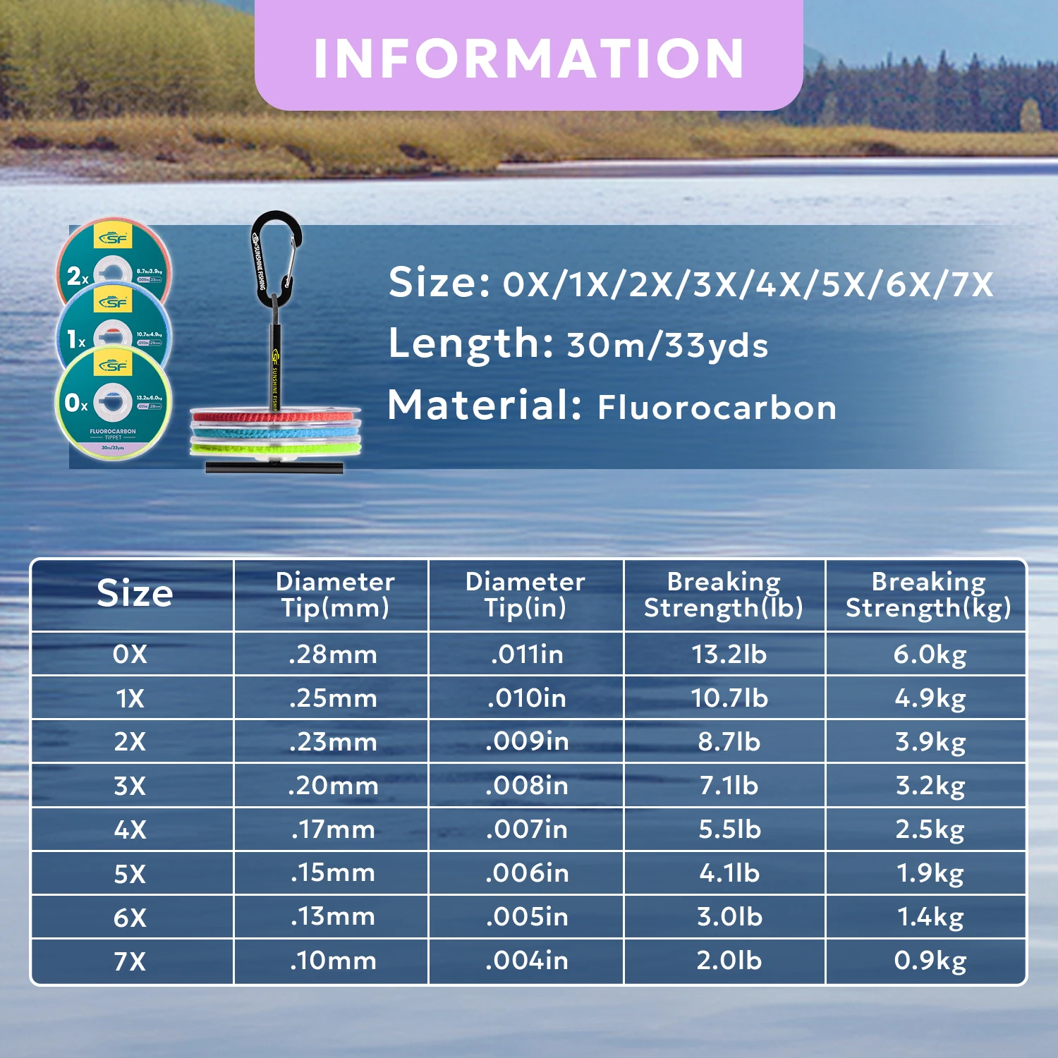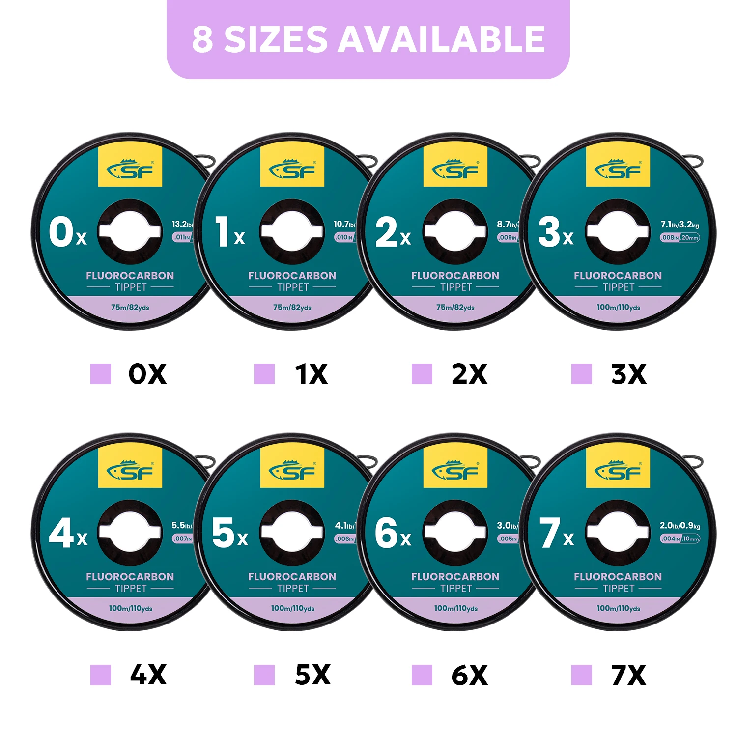 Línea Tippet de fluorocarbono transparente SF con soporte para pesca con mosca Tippets líderes trucha 30M/75M/100M 0X 1X 2X 3X 4X 5X 6X 7X